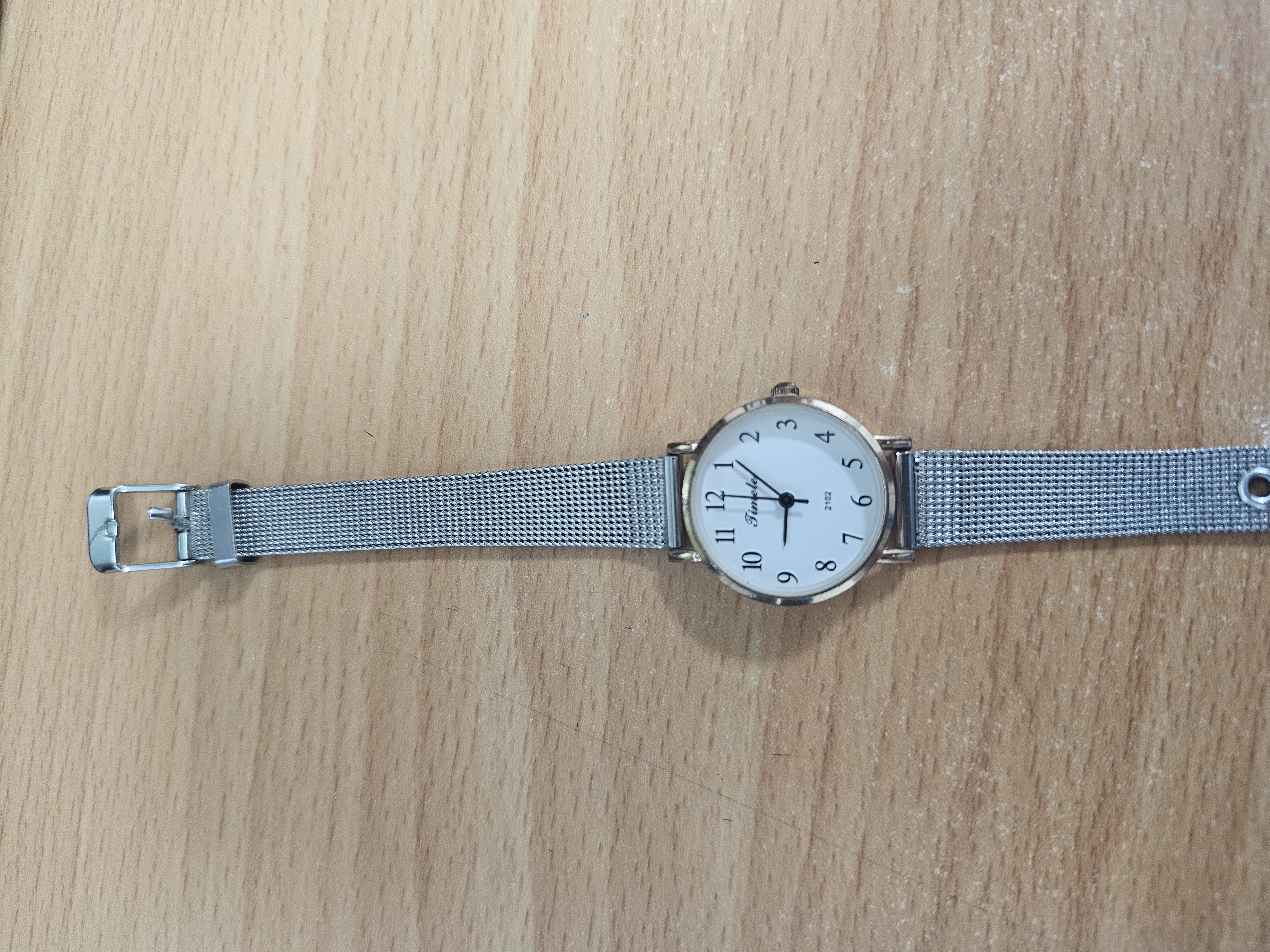 01 đồng hồ kim loại màu bạc mặt màu trắng hiệu Timele, được tìm thấy vào ngày 13/10/2025
