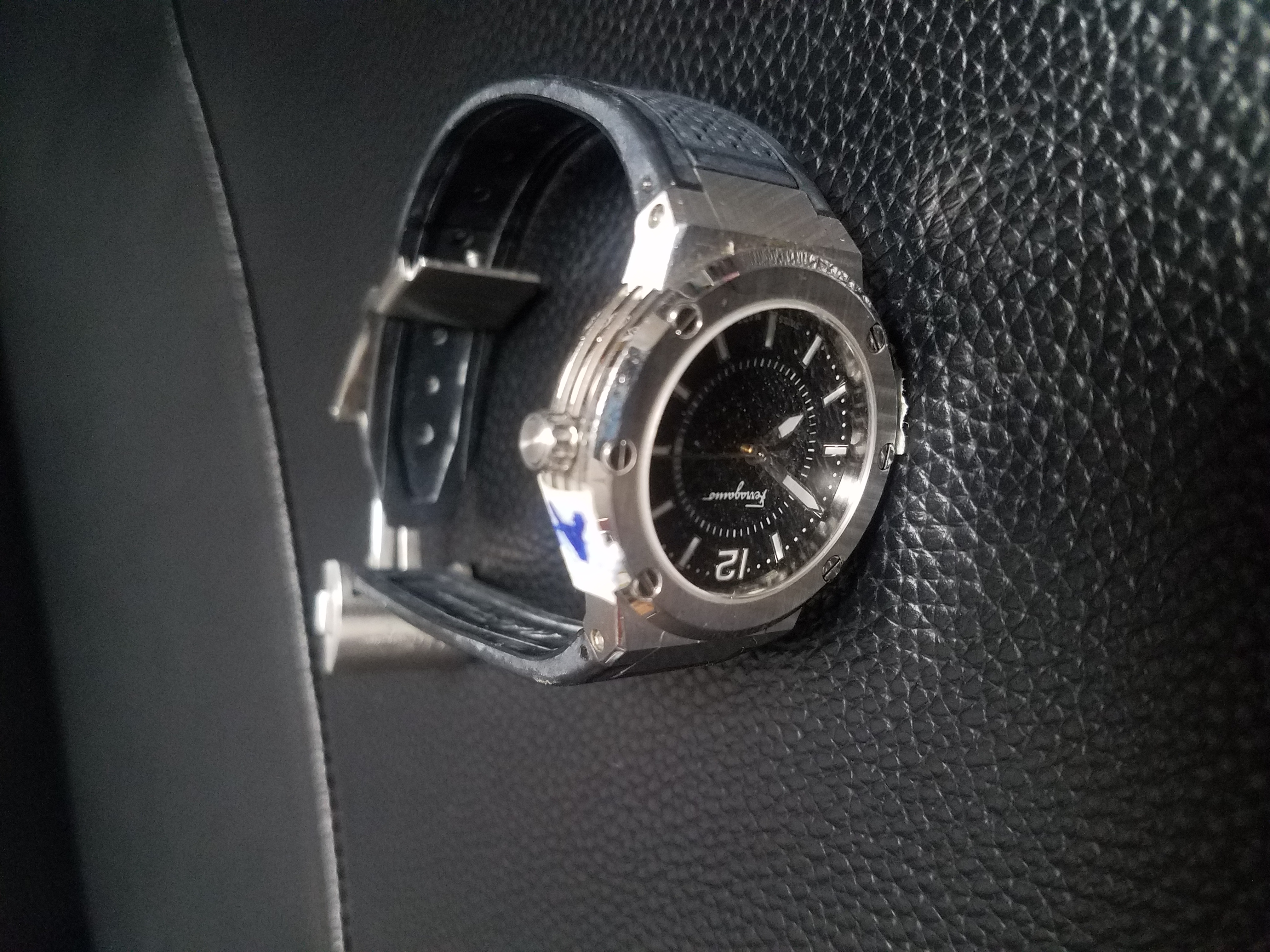 01 đồng hồ (mặt kim loại màu bạc, dây màu xanh đen), ngày 13/08/2023