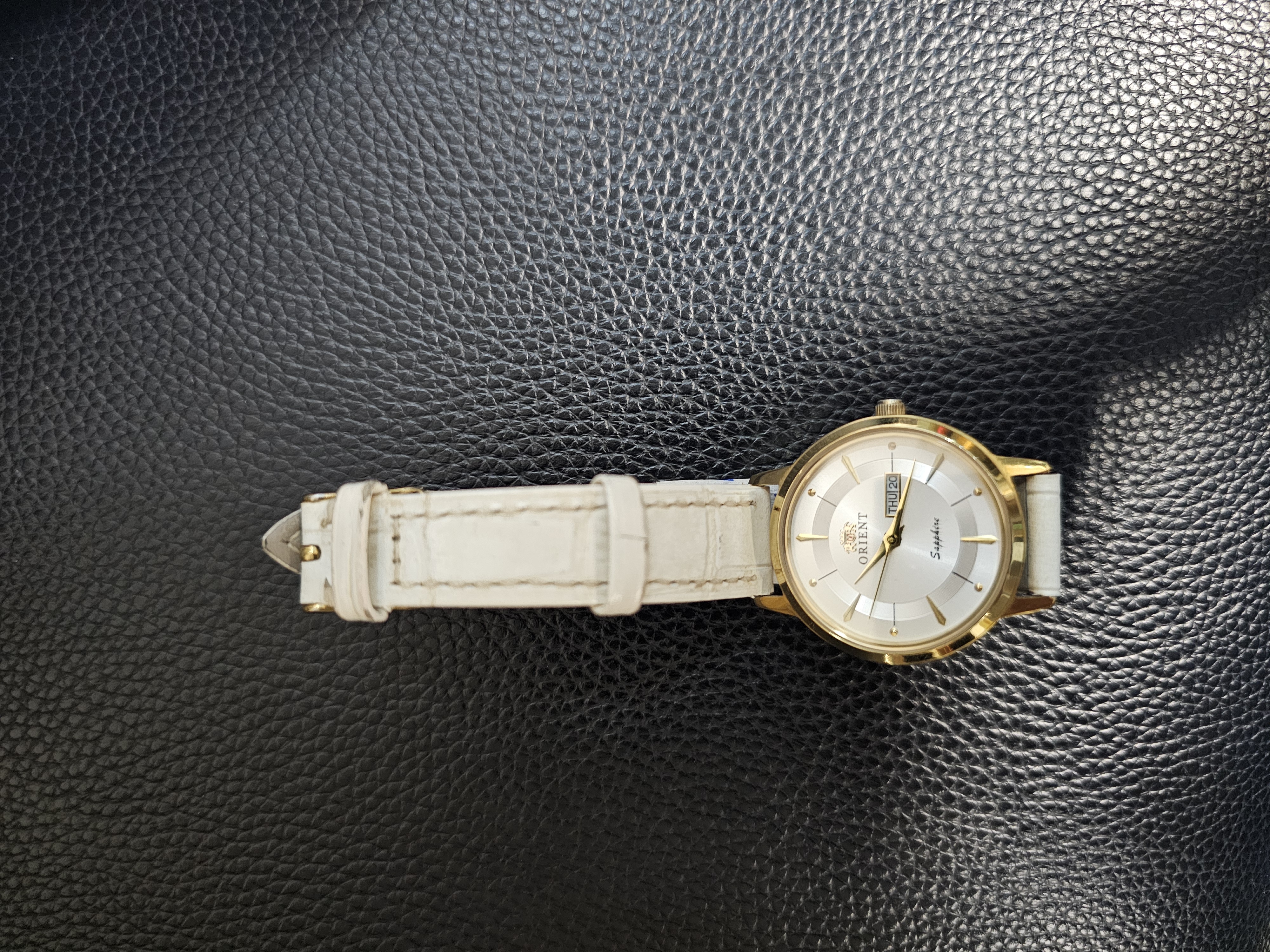 01 đồng hồ ORIENT dây da màu trắng kem, được tìm thấy vào ngày 14/07/2024, ở ANSC HLXT quốc nội