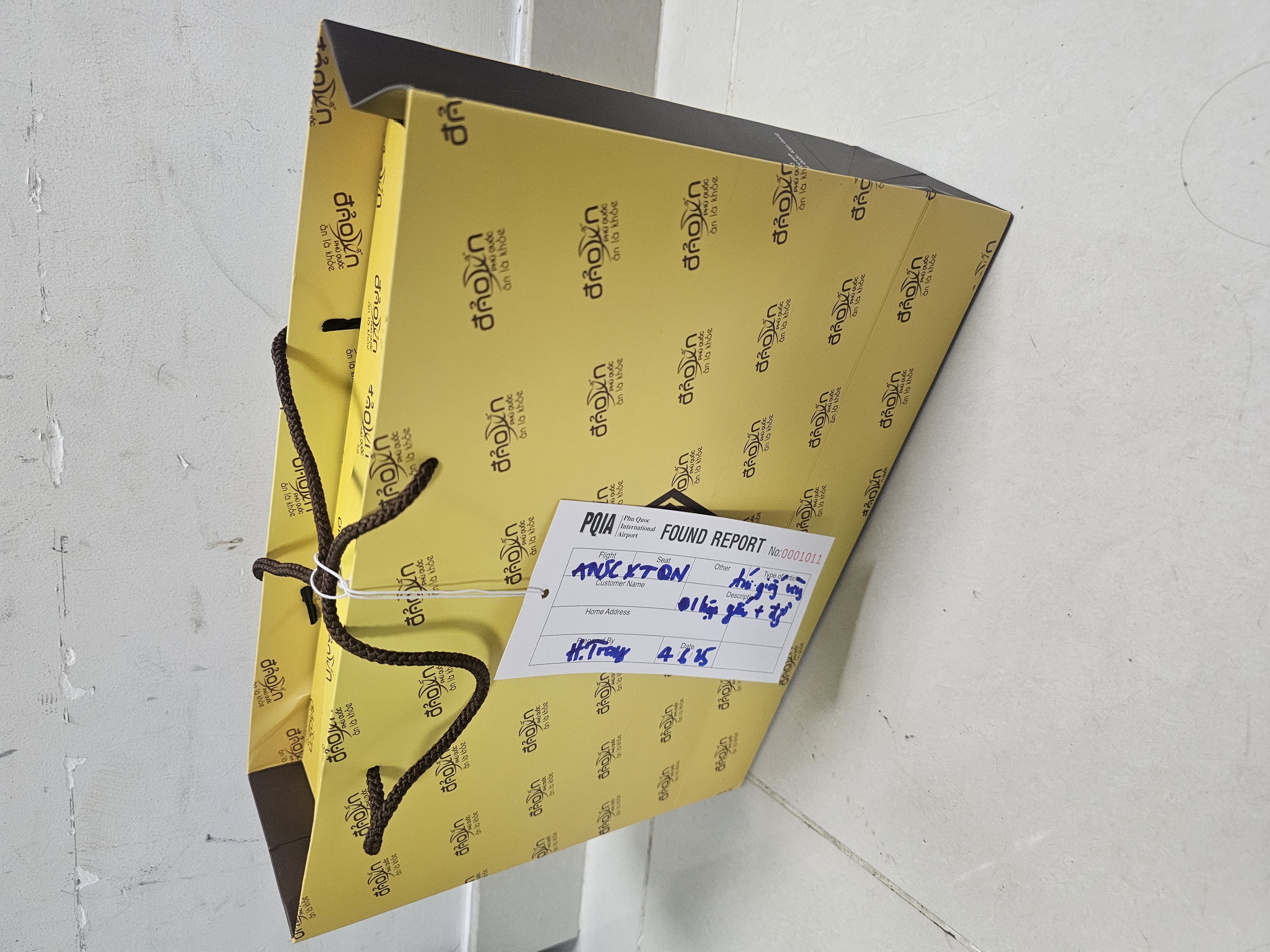 01 túi giấy màu vàng, được tìm thấy ở ANSC HLXT Quốc nội vào ngày 04/06/2025