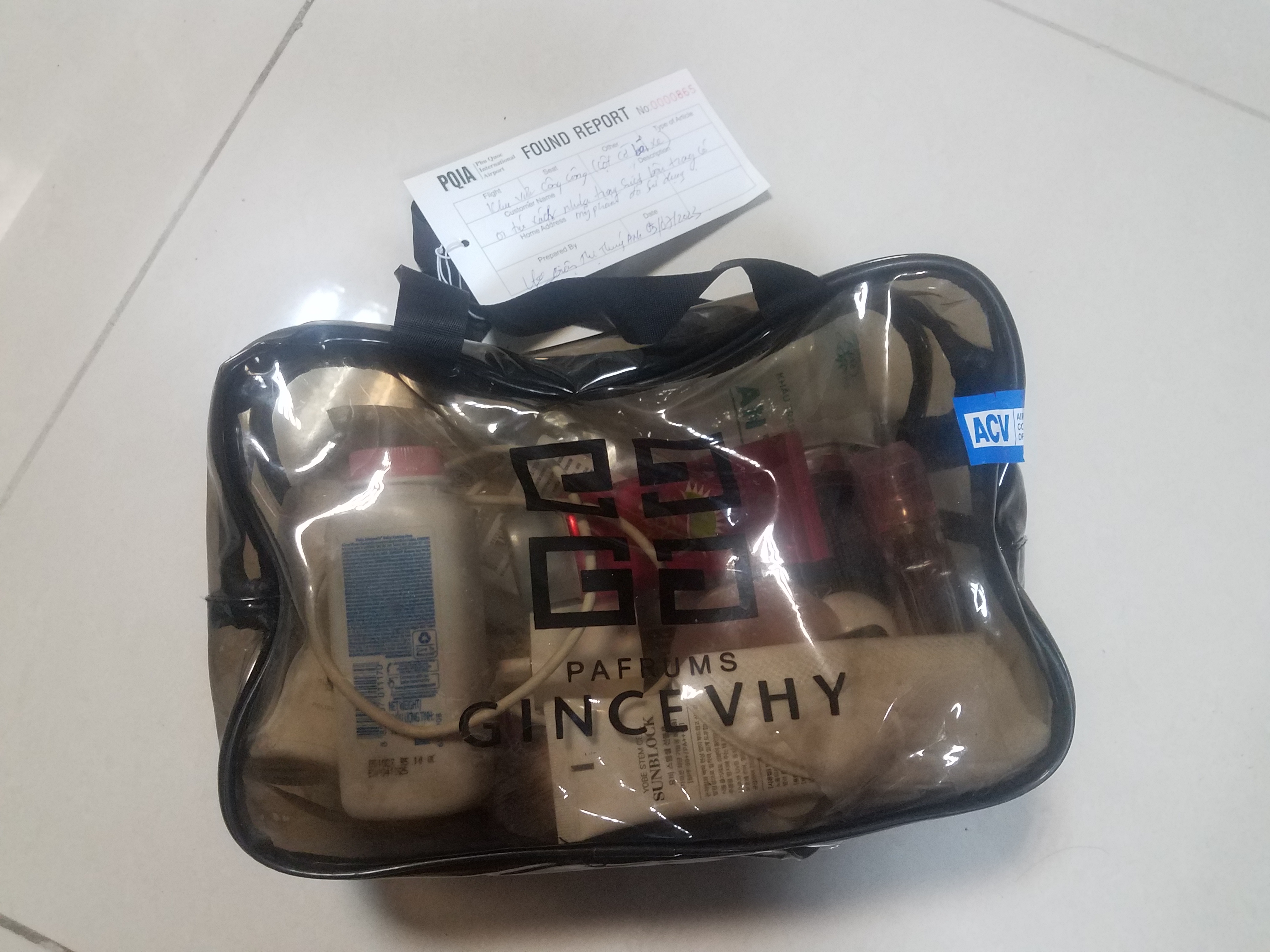 01 túi xách nhựa trong suốt, tìm thấy tại Khu vực công cộng (bãi xe ô tô), ngày 05/07/2023
