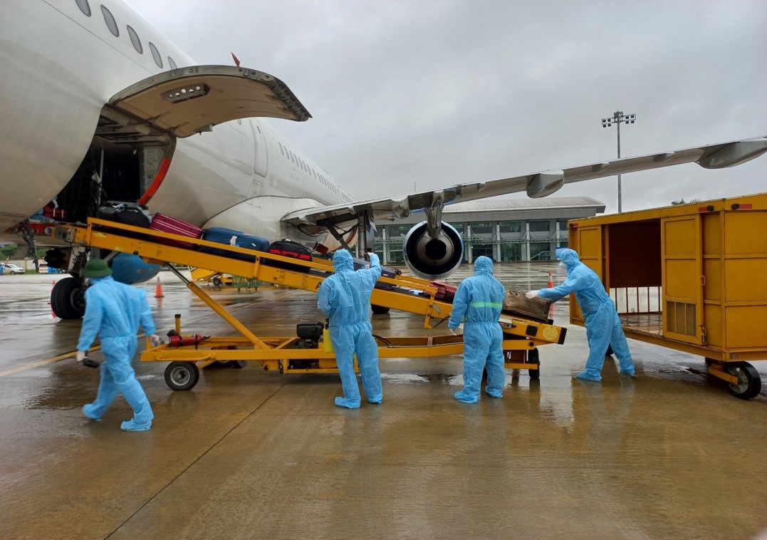 Toàn bộ lực lượng tham gia phục vụ chuyến bay, thực hiện nghiêm quy tắc 5K trong quá trình làm nhiệm vụ.