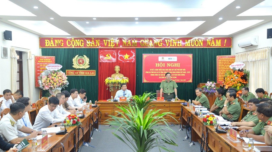 Chiều ngày 22-7-2022, Công an tỉnh Gia Lai và Tổng Công ty Cảng hàng không Việt Nam - CTCP đã tiến hành sơ kết 3 năm (2019-2022) thực hiện Quy chế phối hợp bảo đảm an ninh, an toàn hàng không tại Cảng hàng không Pleiku. Tham dự và đồng chủ trì Hội nghị có Đại tá Nguyễn Ngọc Sơn -Phó Giám đốc Công an tỉnh Gia Lai; đồng chí Nguyễn Đức Hùng - Phó Tổng Giám đốc Tổng Công ty Cảng hàng không Việt Nam - CTCP.