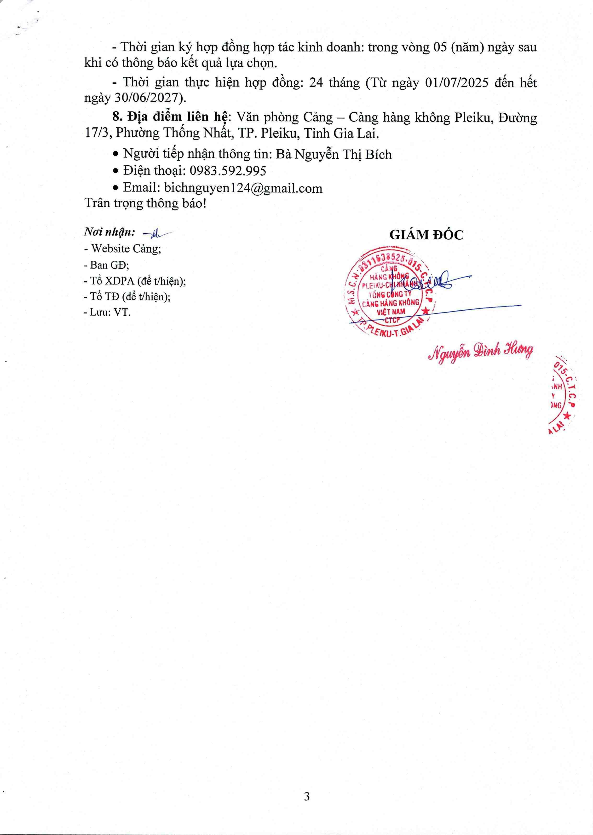 Thông báo về việc Kết quả chào giá “Bảo dưỡng định kỳ hệ thống xử lý nước thải sinh hoạt 06 tháng cuối năm 2025 tại Cảng hàng không Pleiku”