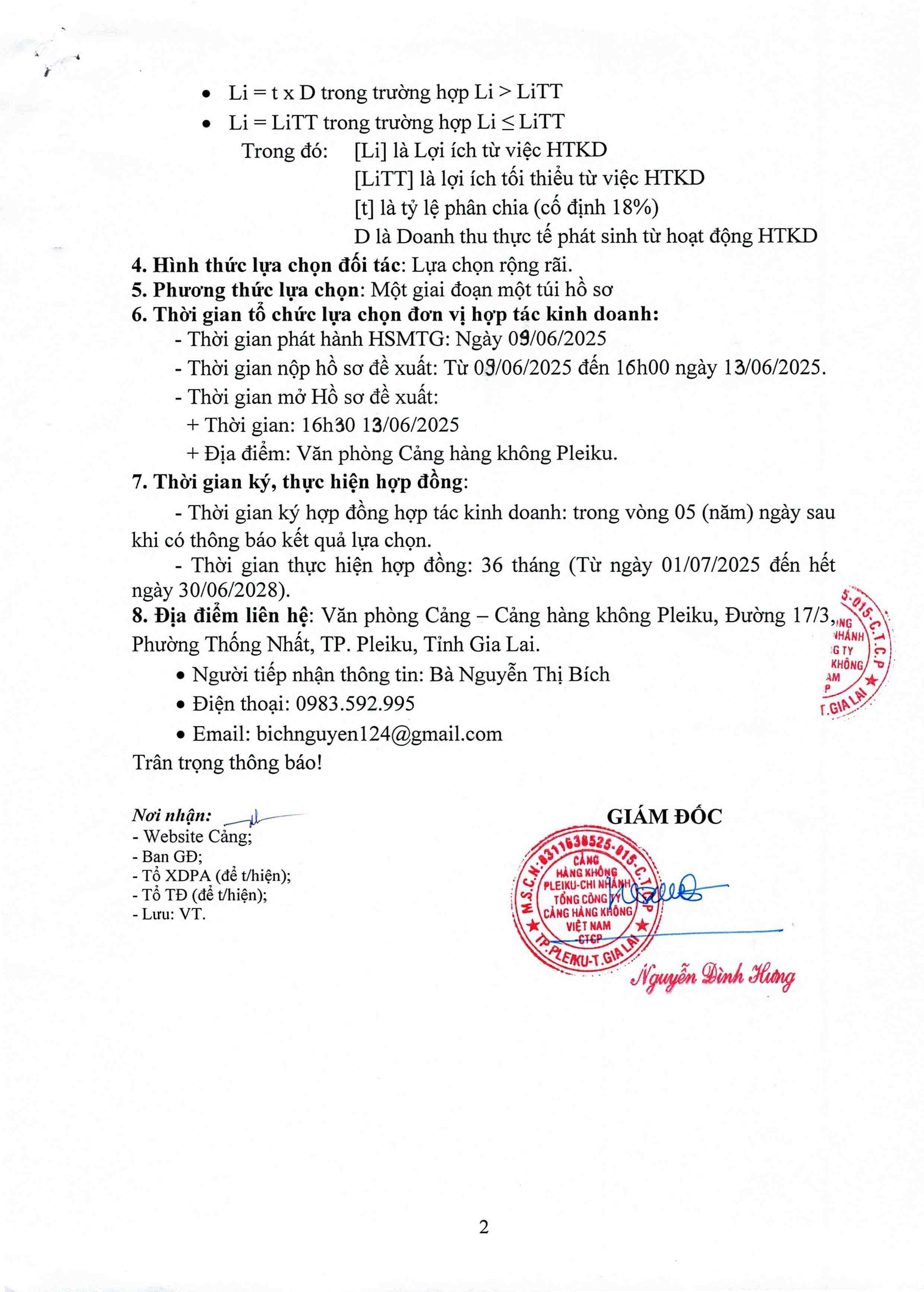 Thông báo về việc Kết quả chào giá “Bảo dưỡng định kỳ hệ thống xử lý nước thải sinh hoạt 06 tháng cuối năm 2025 tại Cảng hàng không Pleiku”