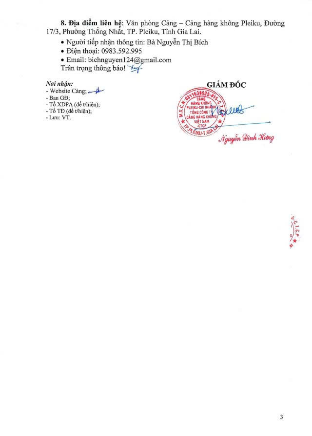 Thông báo về việc Kết quả chào giá “Cung cấp và lắp đặt hệ thống cảnh báo an toàn cho xe thang hành khách tại Cảng hàng không Pleiku”