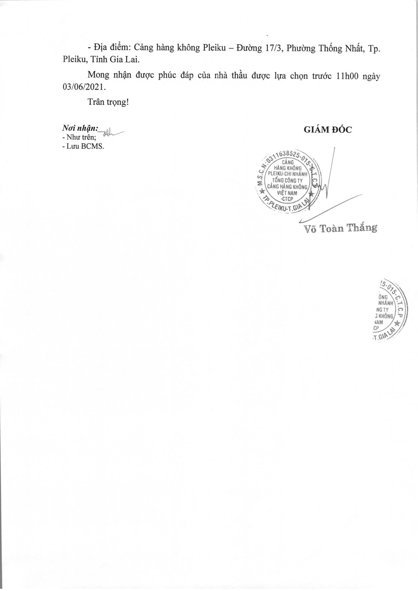 Thông báo mời chào giá về việc "Bảo dưỡng định kỳ hệ thống xử lý nước thải sinh hoạt 06 tháng cuối năm 2025 tại Cảng hàng không Pleiku"