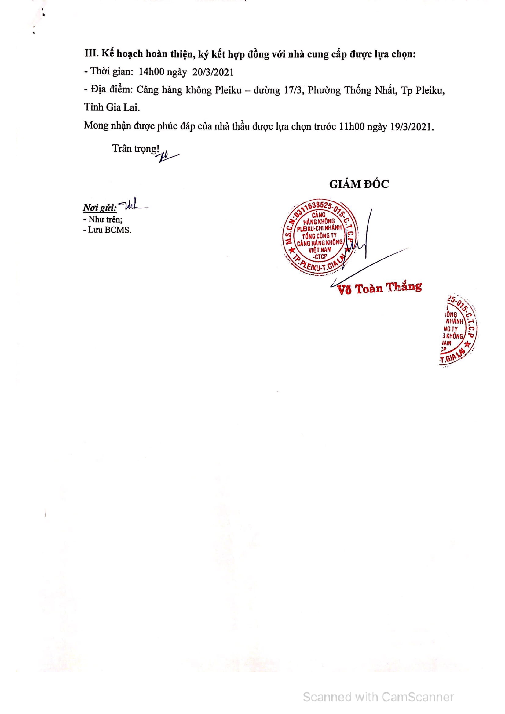 Thông báo về việc Kết quả chào giá “Cung cấp và lắp đặt hệ thống cảnh báo an toàn cho xe thang hành khách tại Cảng hàng không Pleiku”