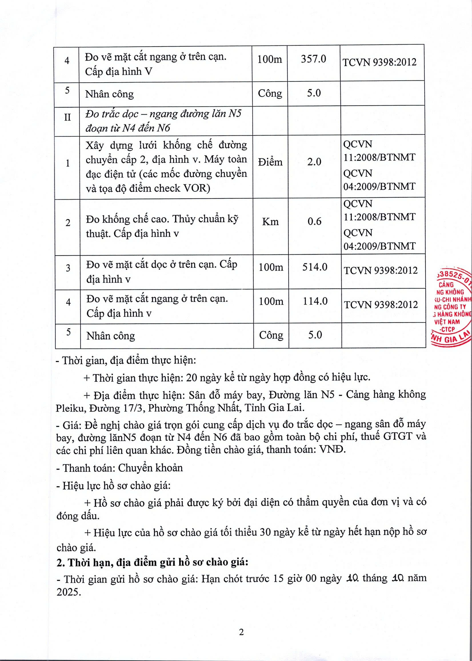 Thông báo mời chào giá: Đo trắc dọc - ngang sân đỗ máy bay, đường lăn N5 đoạn từ N4 đến N6 thuộc Cảng hàng không Pleiku