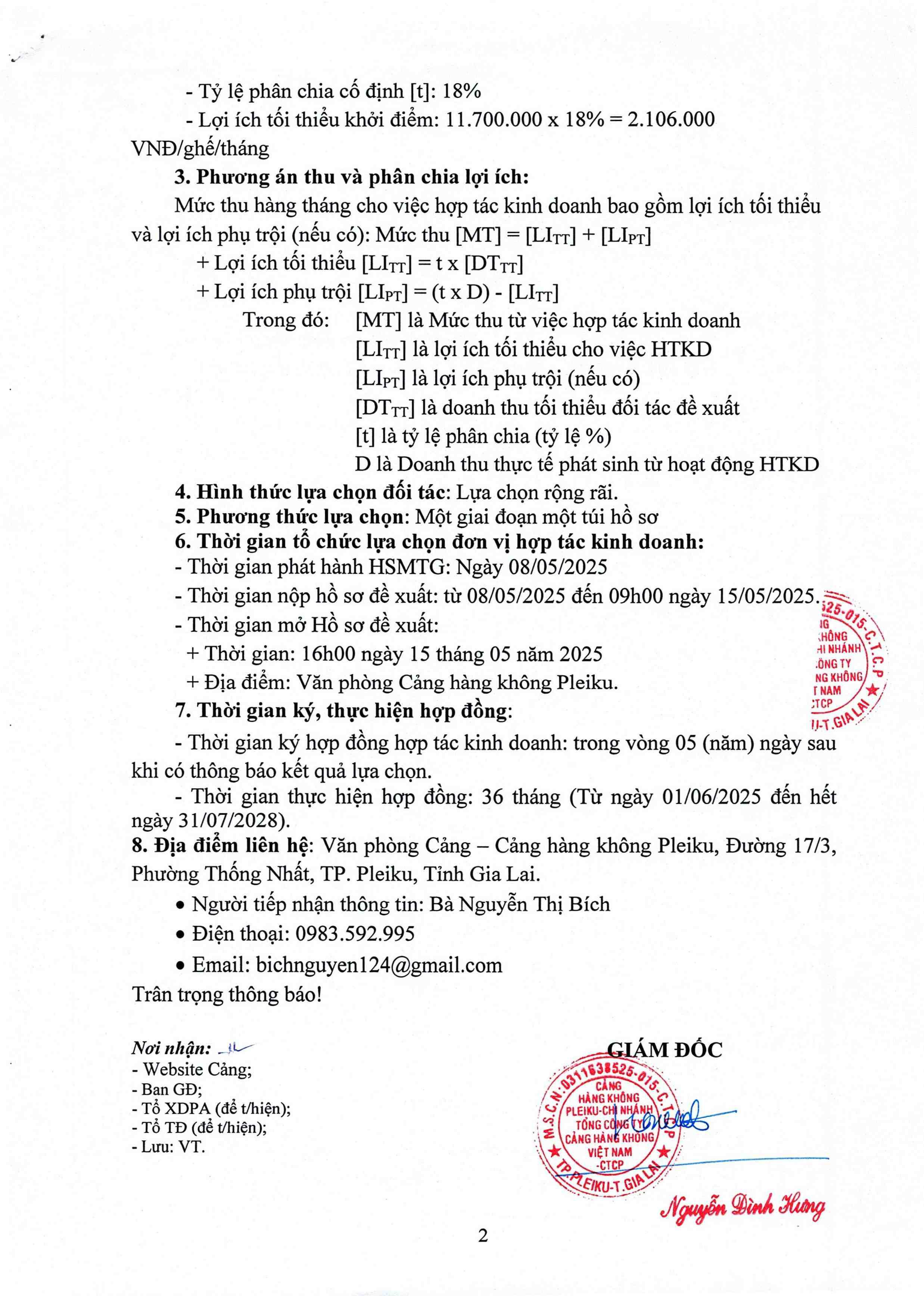 Thông báo về việc Kết quả chào giá “Bảo dưỡng định kỳ hệ thống xử lý nước thải sinh hoạt 06 tháng cuối năm 2025 tại Cảng hàng không Pleiku”