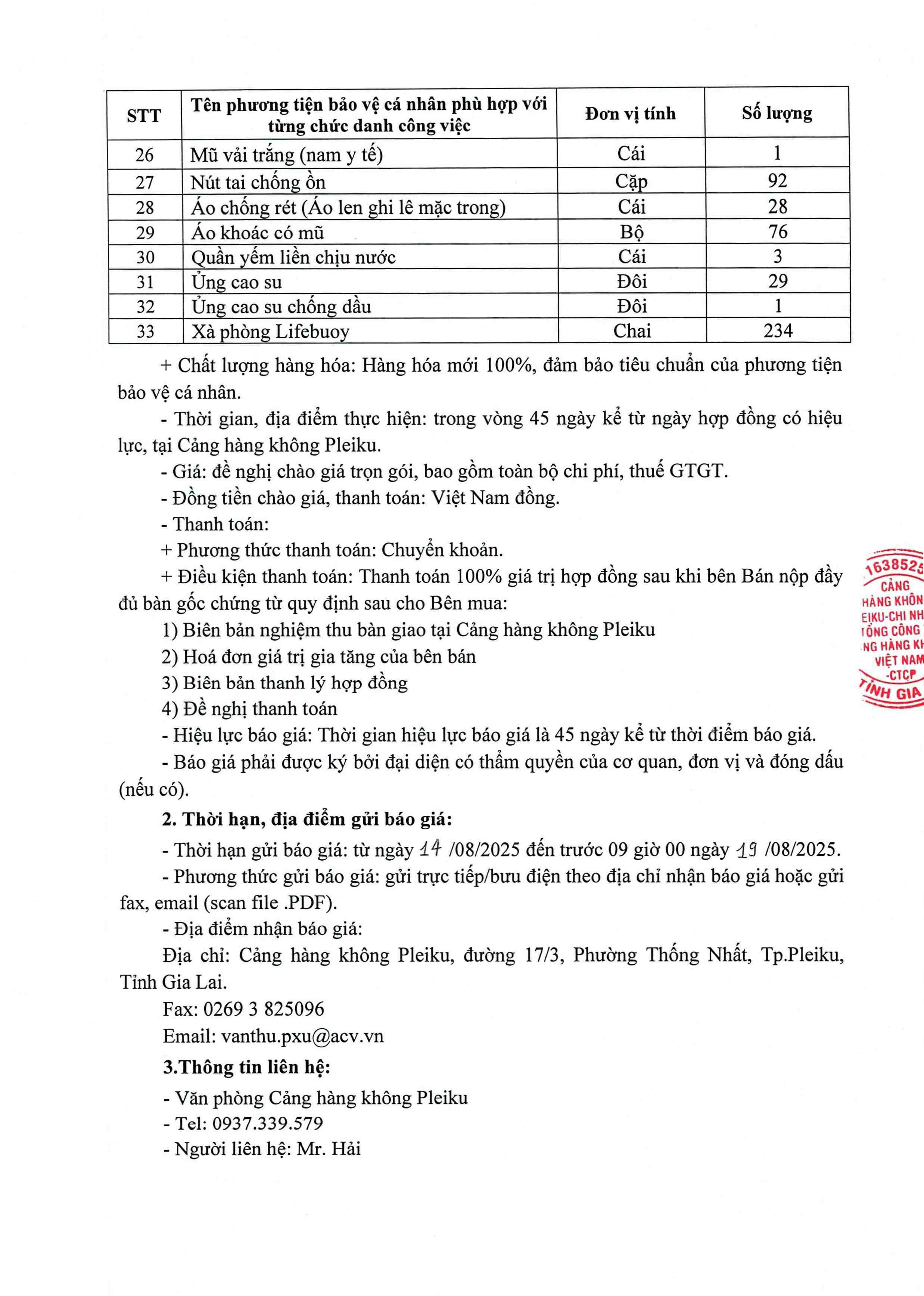 Thông báo mời chào giá về việc "Cung cấp và lắp đặt hệ thống cảnh báo an toàn cho xe thang hành khách tại Cảng hàng không Pleiku"