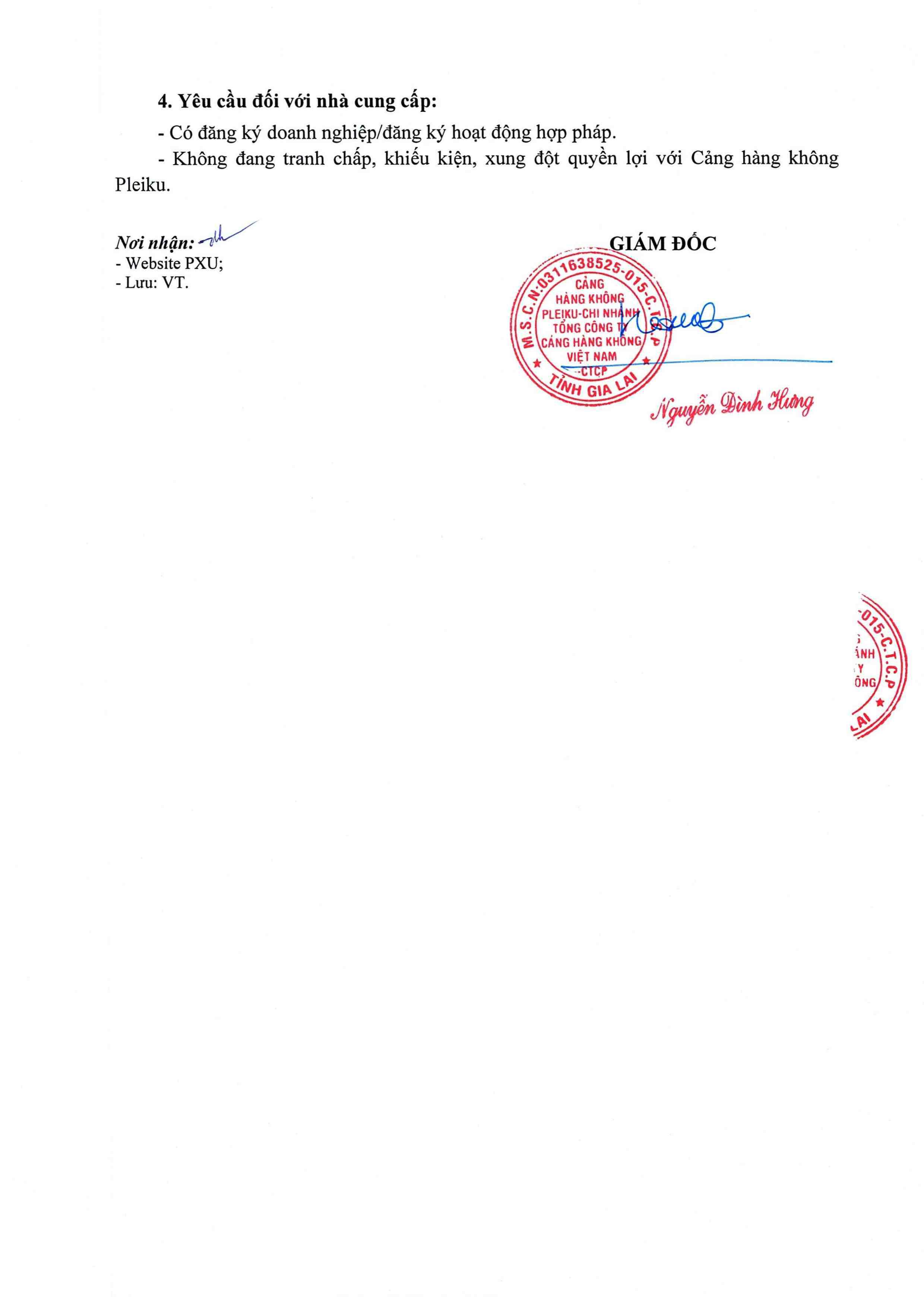 Thông báo mời chào giá về việc "Sửa chữa, cải tạo hệ thống cáp mạng SCN tại phòng kỹ thuật - Nhà ga hành khách Cảng hàng không Pleiku"