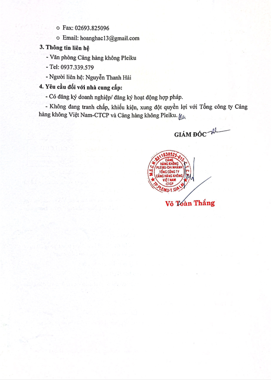 Thông báo mời chào giá vệ sinh nhà điều hành và nhà ga hành khách Cảng hàng không Pleiku