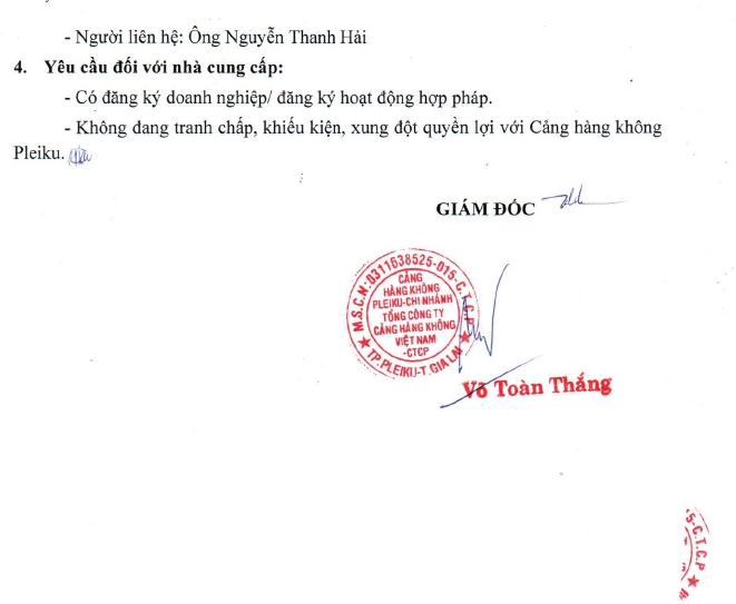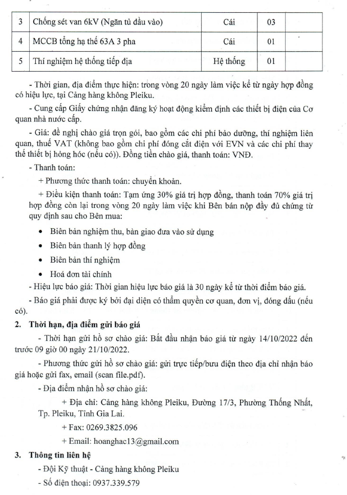 Thông báo mời chào giá về việc "Cung cấp và lắp đặt hệ thống cảnh báo an toàn cho xe thang hành khách tại Cảng hàng không Pleiku"