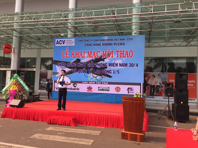 Được sự nhất trí của Công đoàn Tổng Công ty Cảng hàng không Việt Nam và lãnh đạo đơn vị, Công Đoàn Cảng hàng không Pleiku đã tổ chức hội thao chào mừng ngày giải phóng hoàn toàn miền nam 30/4 và ngày quốc tế lao động 1/5 giữa các đơn vị trong và ngoài ngành hàng không tại Cảng hàng không Pleiku. Hội thao đã tổ chức 5 môn thi đấu với 10 nội dung, bao gồm: Cầu lông, bóng đá, bóng bàn, kéo co, nhảy bao bố. Đến dự hội thao có vận động viên của các đơn vị trong và ngoài ngành gồm: Cảng hàng không Pleiku, Vietcombank Gia lai, Bảo Minh Gia lai, Công ty TNHH MTV Mai Linh, Công ty TNHH MTV Hùng Nhân, Công ty CP Thăng Long, DNTN Ngọc Hà và các đơn vị hoạt động trong Cảng : Đại diện cảng vụ tại Pleiku, Veaco, Tổ xăng dầu, VNA, VJ, BL, Đài KSKL.