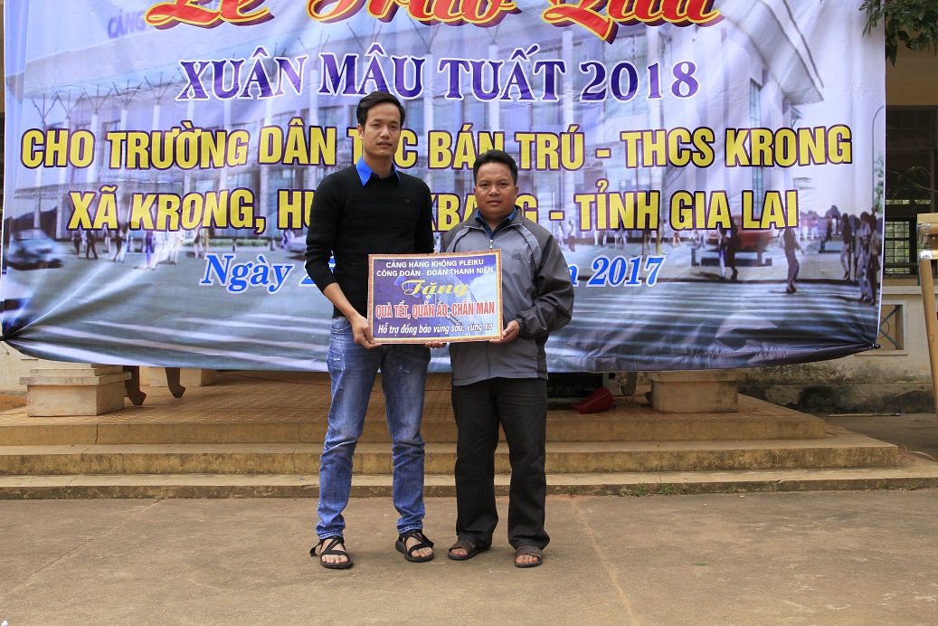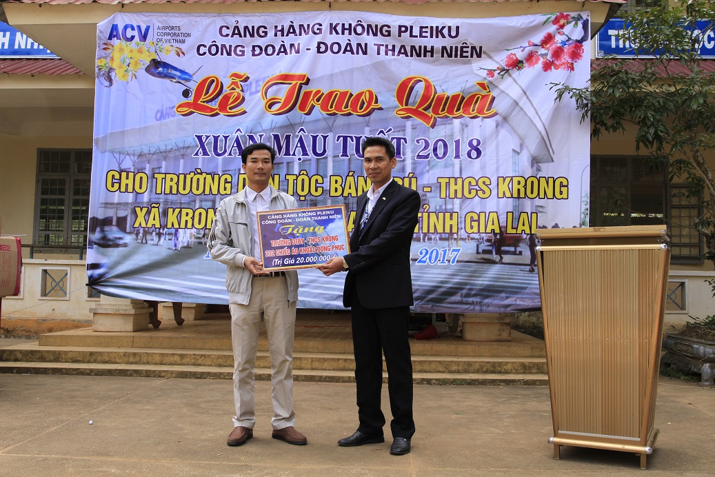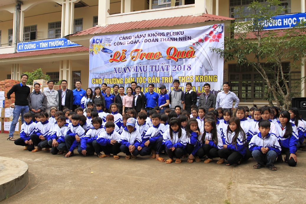 Phát huy tinh thần tương thân, tương ái, khơi dậy sự đoàn kết gắn bó, tinh thần yêu thương đất nước con người trong mỗi Cán bộ, đoàn viên Công đoàn, đoàn viên thanh niên, người lao động trong đơn vị. Bằng những hành động cụ thể, chia sẻ những khó khăn trong cuộc sống của đồng bào dân tộc thiểu số. Nhất là các em học sinh nghèo vượt khó tại các vùng sâu, vùng xa trên địa bàn tỉnh Gia Lai. Được sự đồng ý của lãnh đạo đơn vị, BTV Công đoàn Tổng công ty Cảng hàng không Việt Nam. Ngày 25 tháng 12 năm 2017 BCH Công đoàn – Đoàn thanh niên Cảng hàng không Pleiku đã tổ chức “ Chương trình từ thiện” để tặng quà cho đồng bào và các em học sinh tại “Trường phổ thông dân tộc bán trú – trung học cơ sở Krong”. Xã Krong – Huyện Kbang – Tỉnh Gia Lai.