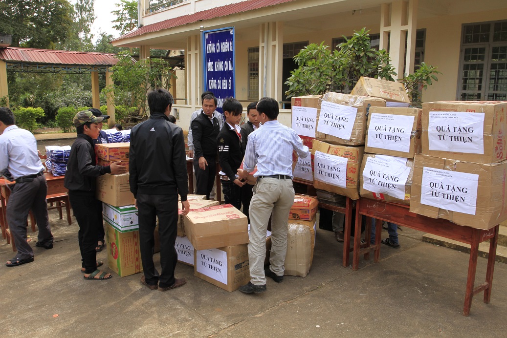 Đại diện BCH Đoàn TN: Trao quà cho bà con trong xã trị giá 10.000.000 VNĐ và quần áo, chăn màn cũ.