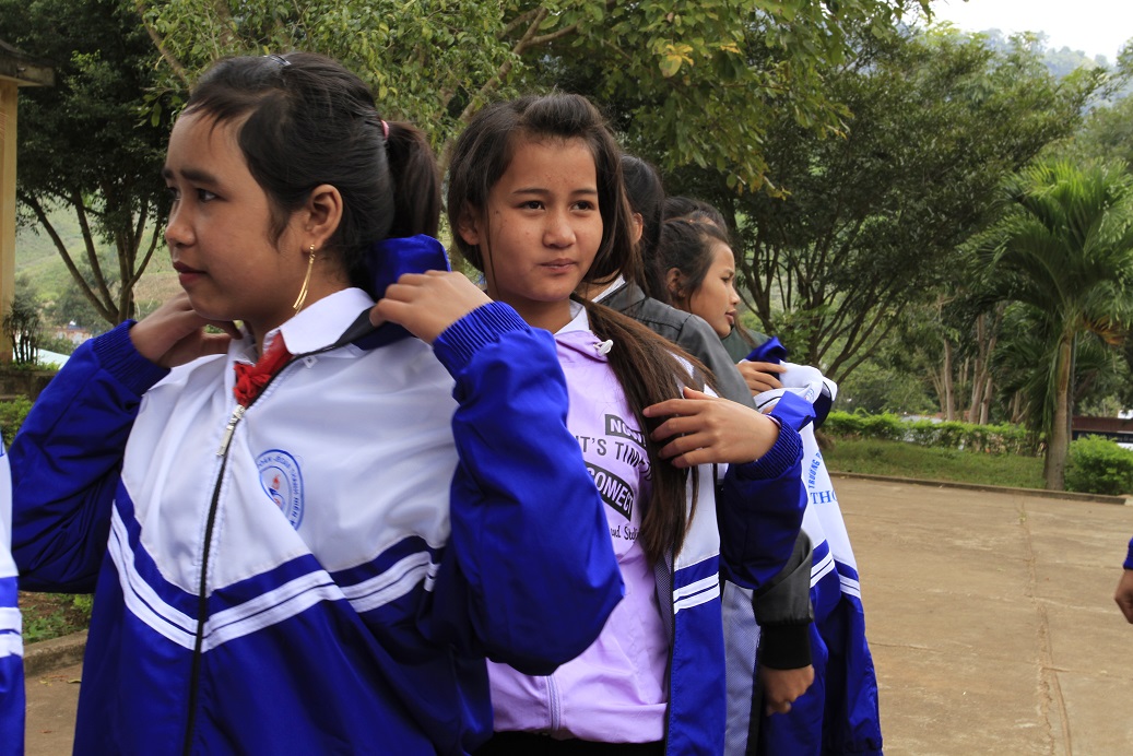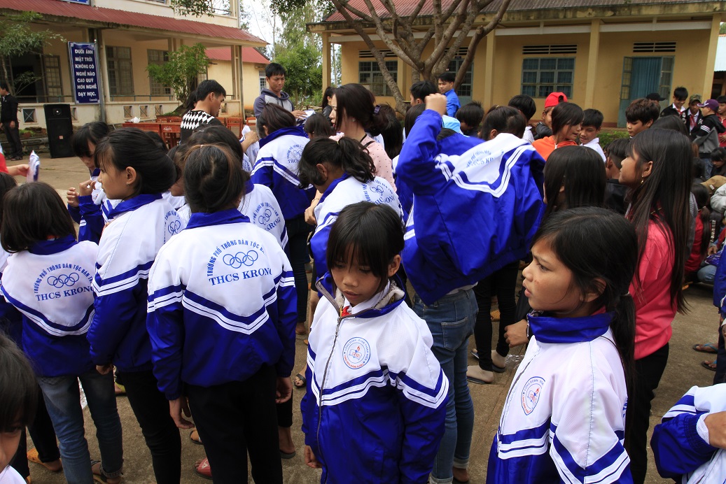 Các cháu học sinh trường dân tộc bán trú – THCS Krong, trong trang phục mới