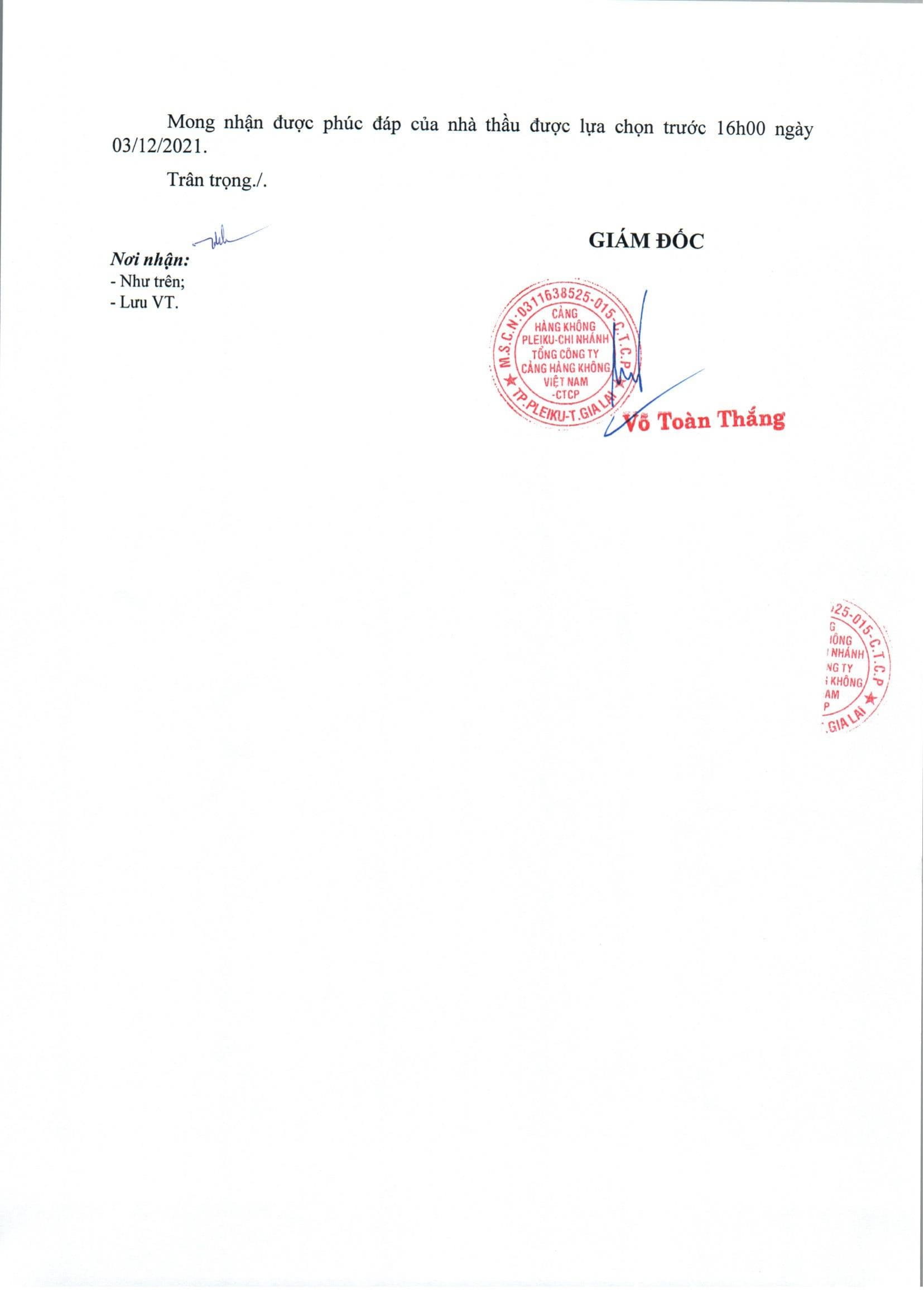 Thông báo mời chào giá vệ sinh nhà điều hành và nhà ga hành khách Cảng hàng không Pleiku