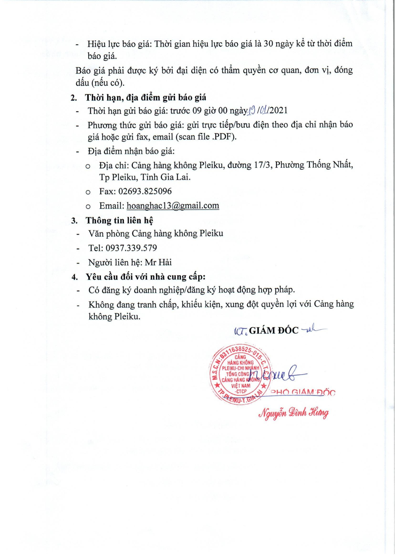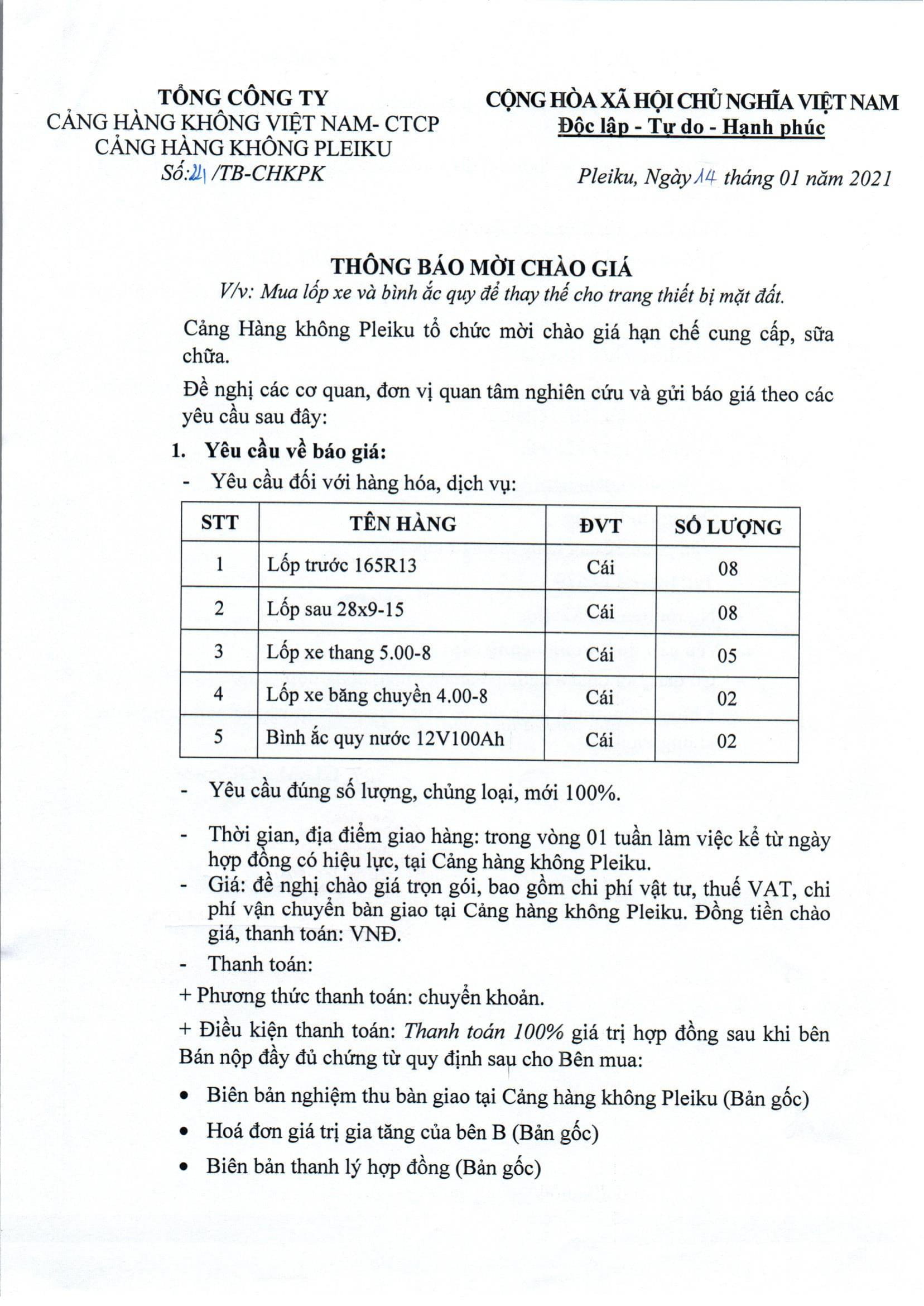 Thông báo về việc Kết quả chào giá “Cung cấp và lắp đặt hệ thống cảnh báo an toàn cho xe thang hành khách tại Cảng hàng không Pleiku”