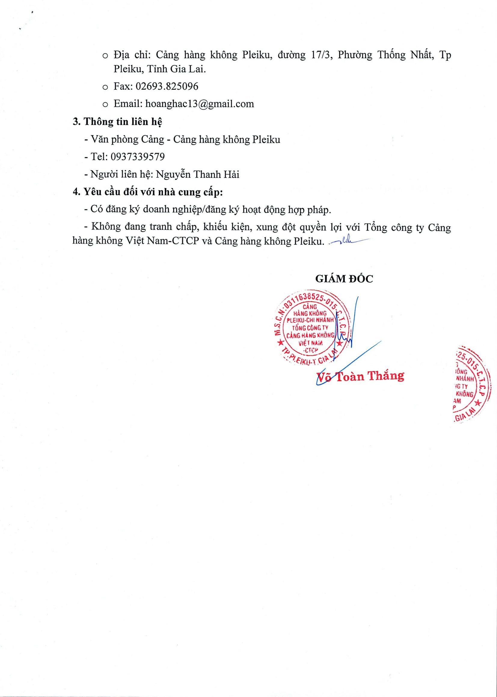 Thông báo mời chào giá vệ sinh nhà điều hành và nhà ga hành khách Cảng hàng không Pleiku