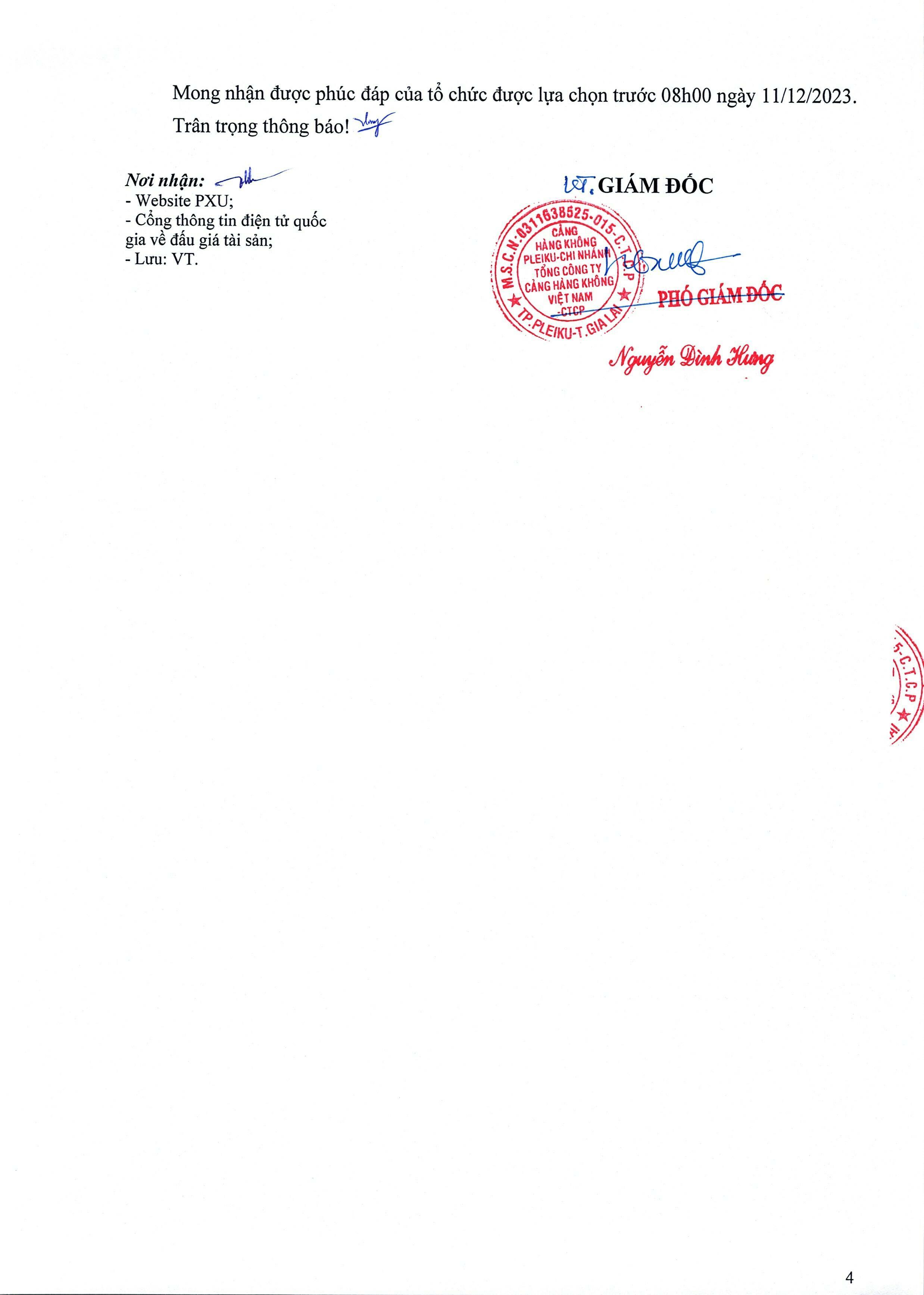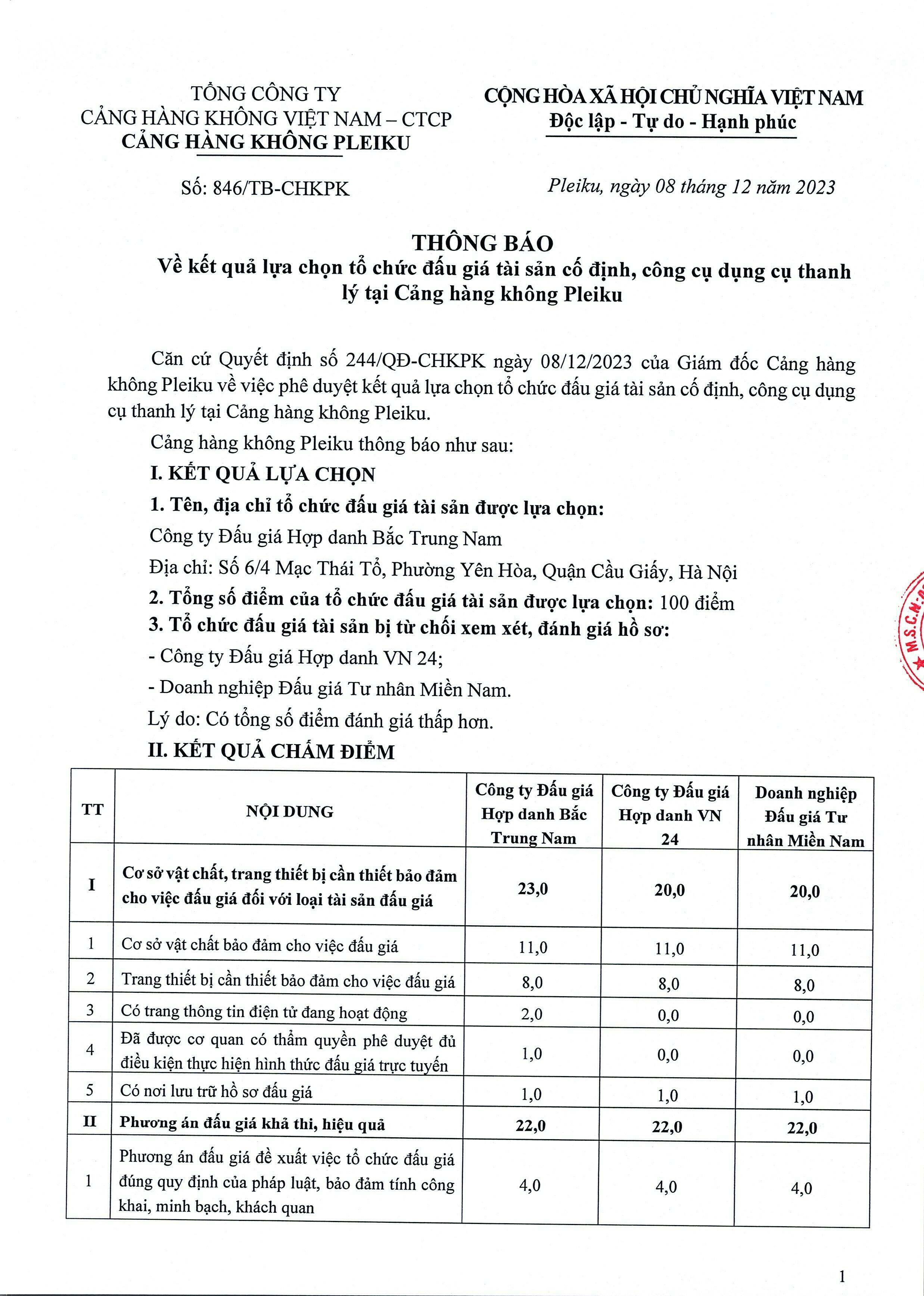 Thông báo kết quả: Lựa chọn tổ chức đấu giá tài sản cố định, công cụ dụng cụ thanh lý tại Cảng hàng không