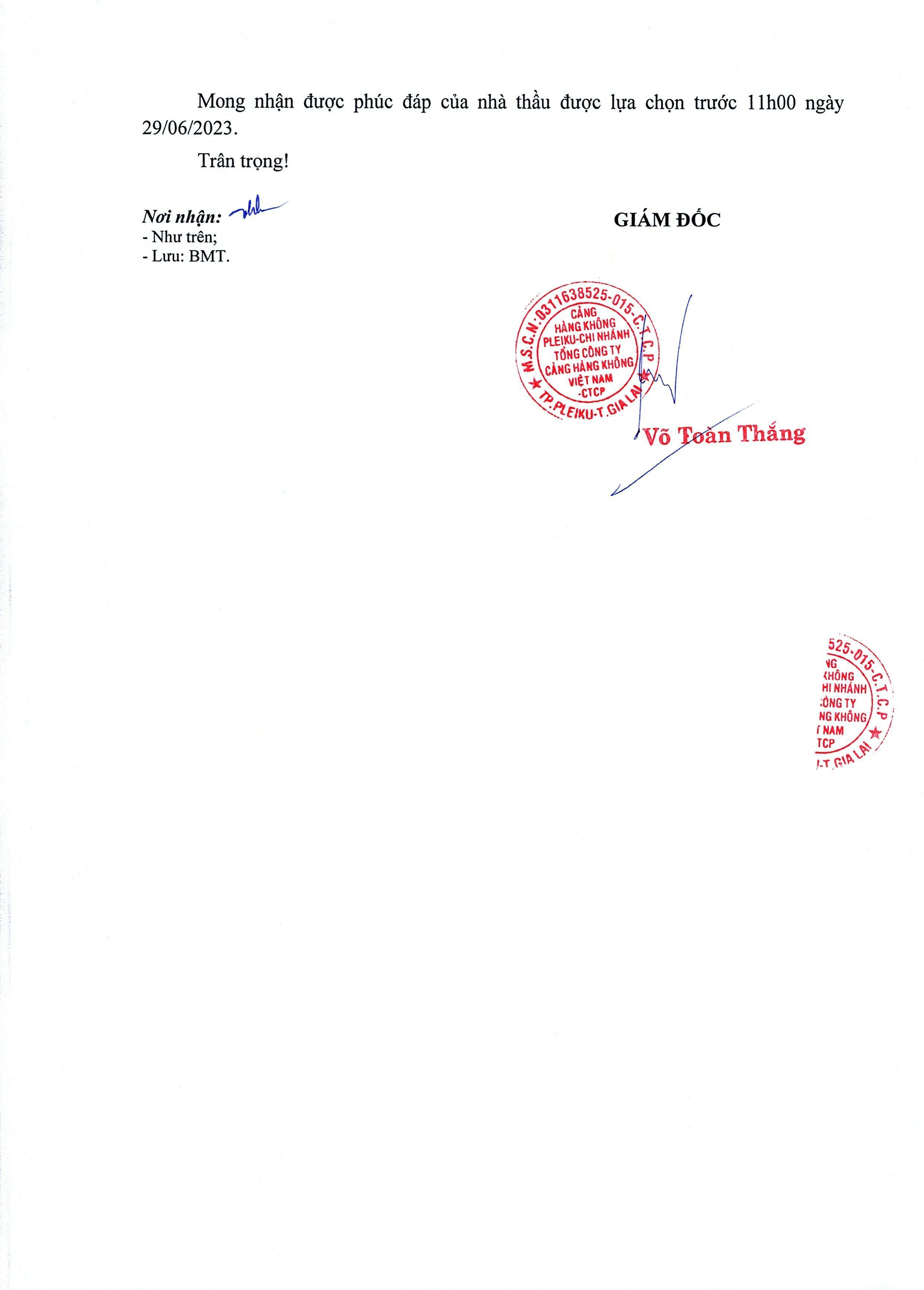 Thông báo mời chào giá vệ sinh nhà điều hành và nhà ga hành khách Cảng hàng không Pleiku