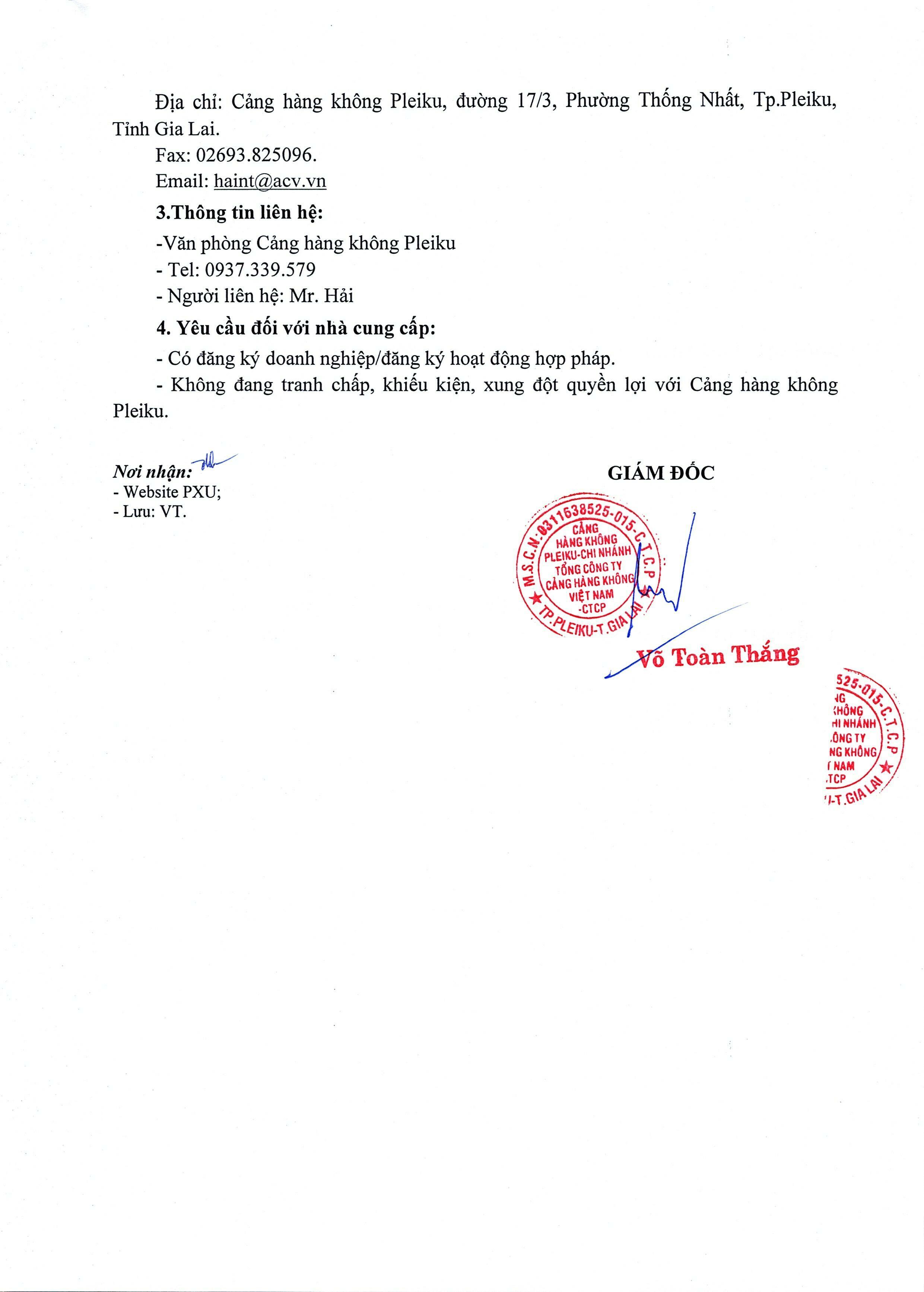 Thông báo mời chào giá vệ sinh nhà điều hành và nhà ga hành khách Cảng hàng không Pleiku