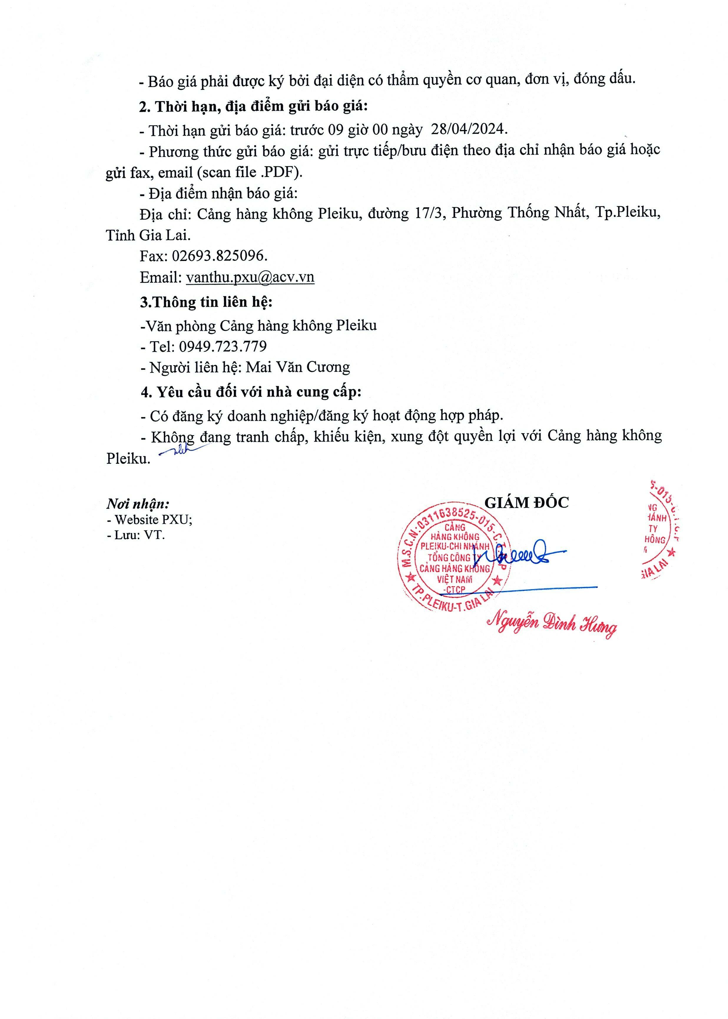 Thông báo mời chào giá vệ sinh nhà điều hành và nhà ga hành khách Cảng hàng không Pleiku