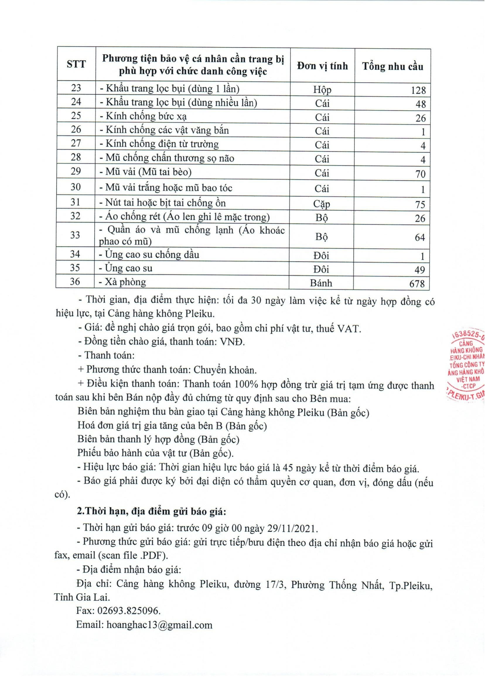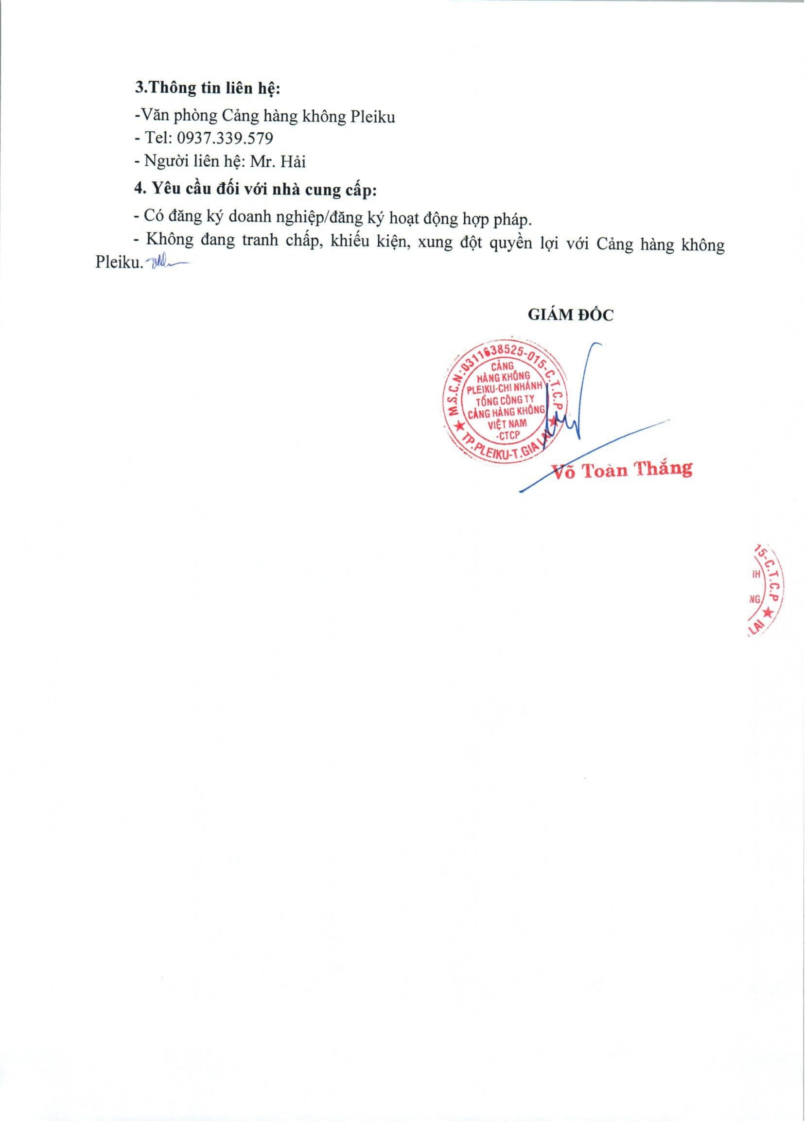 Thông báo mời chào giá vệ sinh nhà điều hành và nhà ga hành khách Cảng hàng không Pleiku