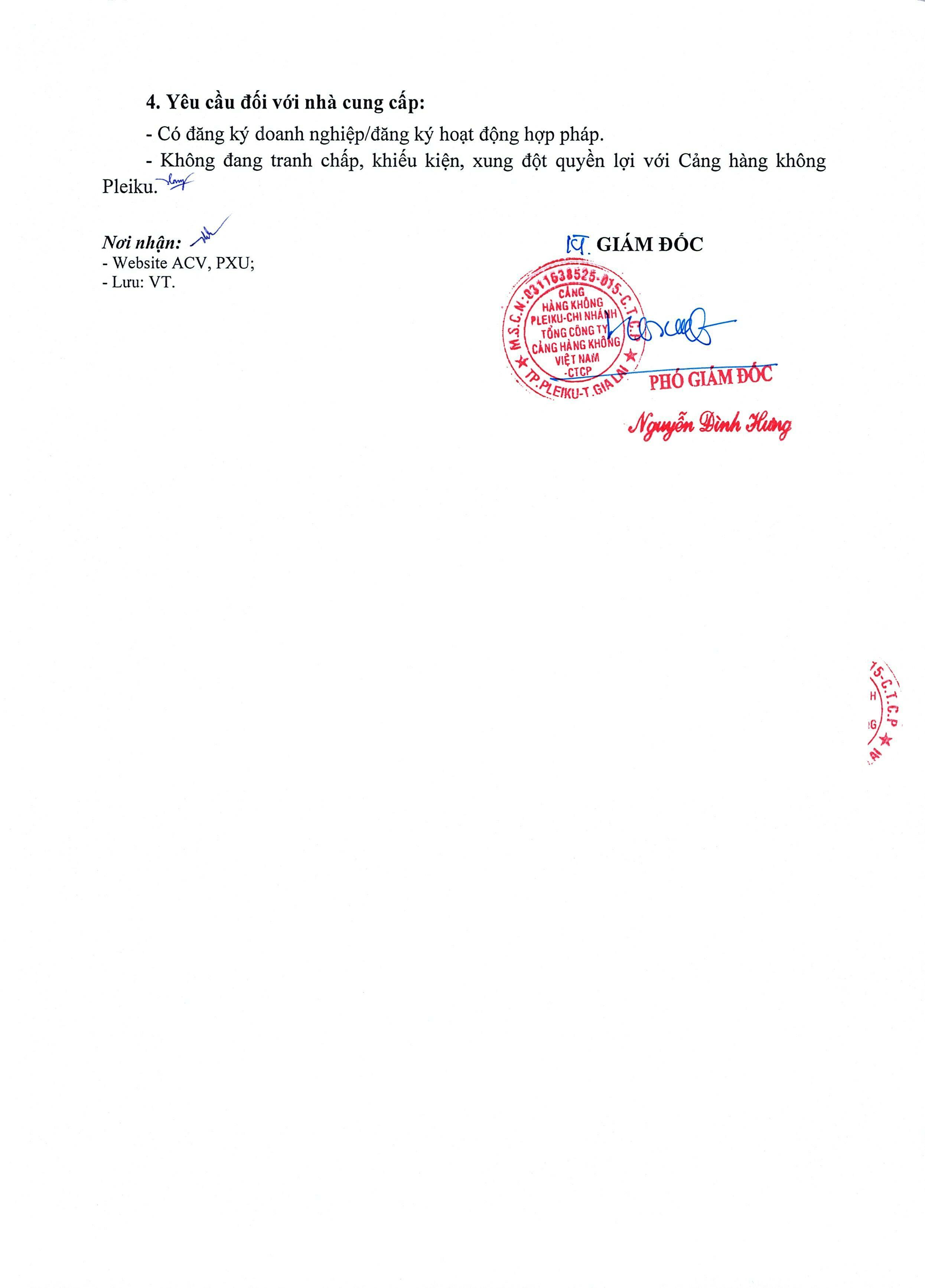 Thông báo mời chào giá về việc "Sửa chữa, cải tạo hệ thống cáp mạng SCN tại phòng kỹ thuật - Nhà ga hành khách Cảng hàng không Pleiku"