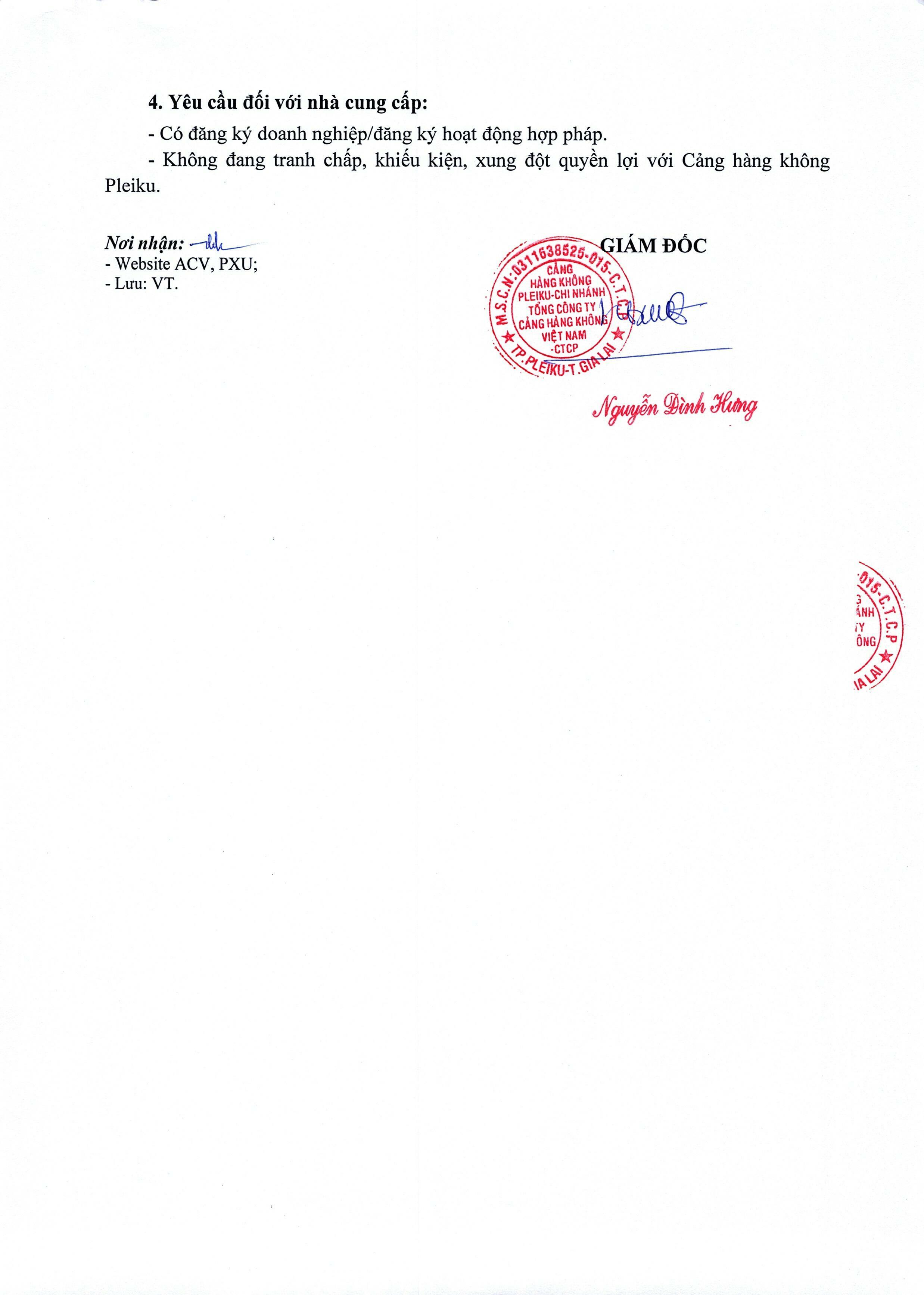 Thông báo mời chào giá về việc "Sửa chữa, cải tạo hệ thống cáp mạng SCN tại phòng kỹ thuật - Nhà ga hành khách Cảng hàng không Pleiku"