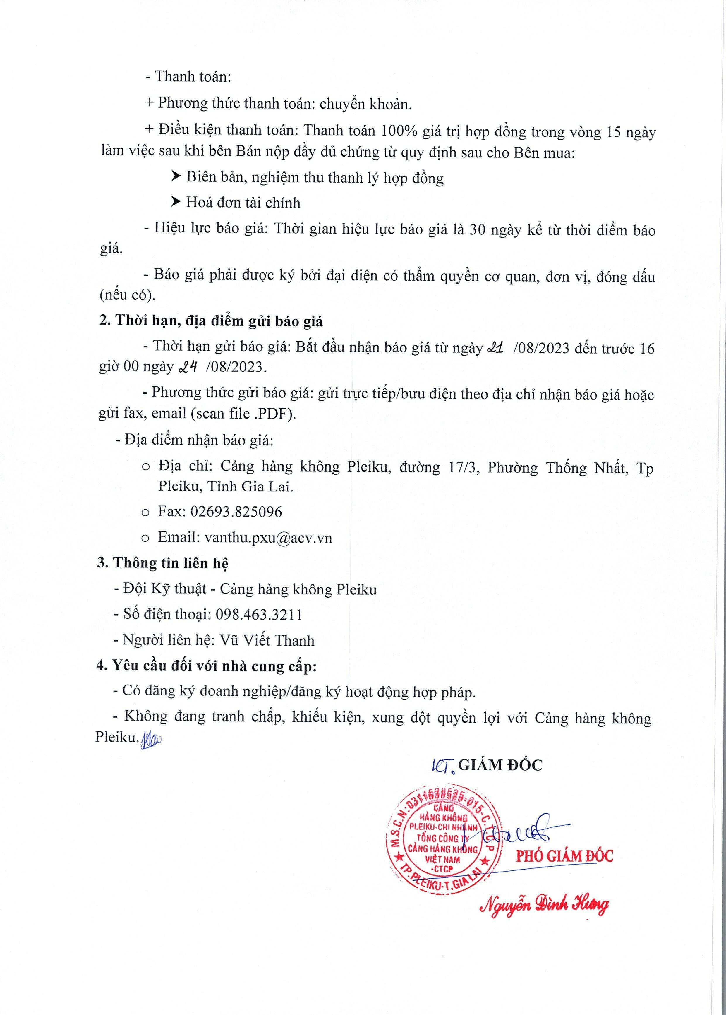 Thông báo mời chào giá vệ sinh nhà điều hành và nhà ga hành khách Cảng hàng không Pleiku