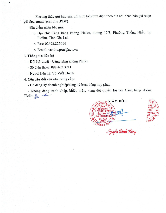 Thông báo mời chào giá vệ sinh nhà điều hành và nhà ga hành khách Cảng hàng không Pleiku