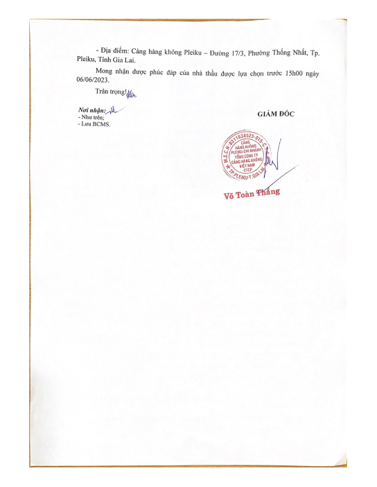 Thông báo mời chào giá vệ sinh nhà điều hành và nhà ga hành khách Cảng hàng không Pleiku