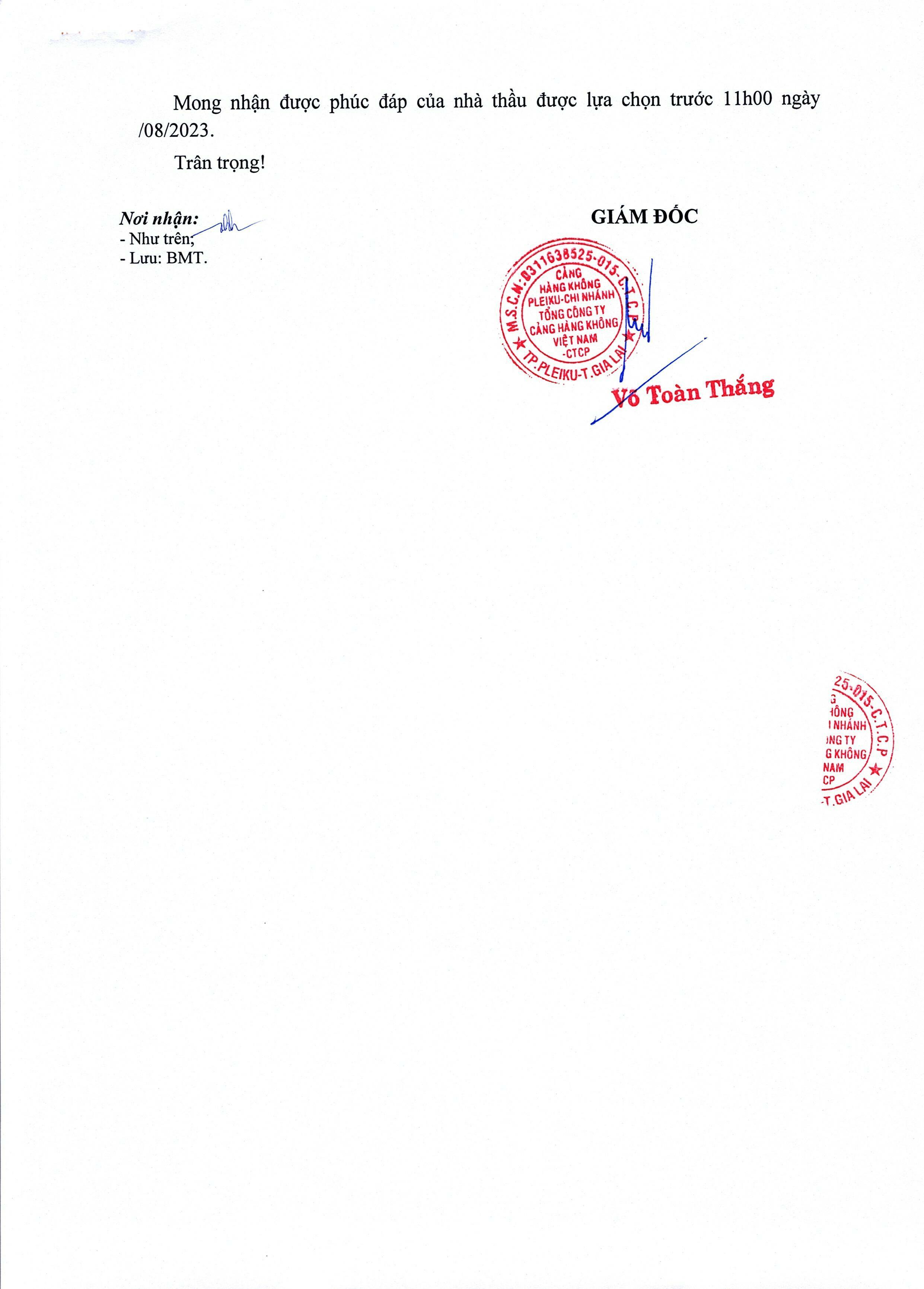 Thông báo mời chào giá vệ sinh nhà điều hành và nhà ga hành khách Cảng hàng không Pleiku