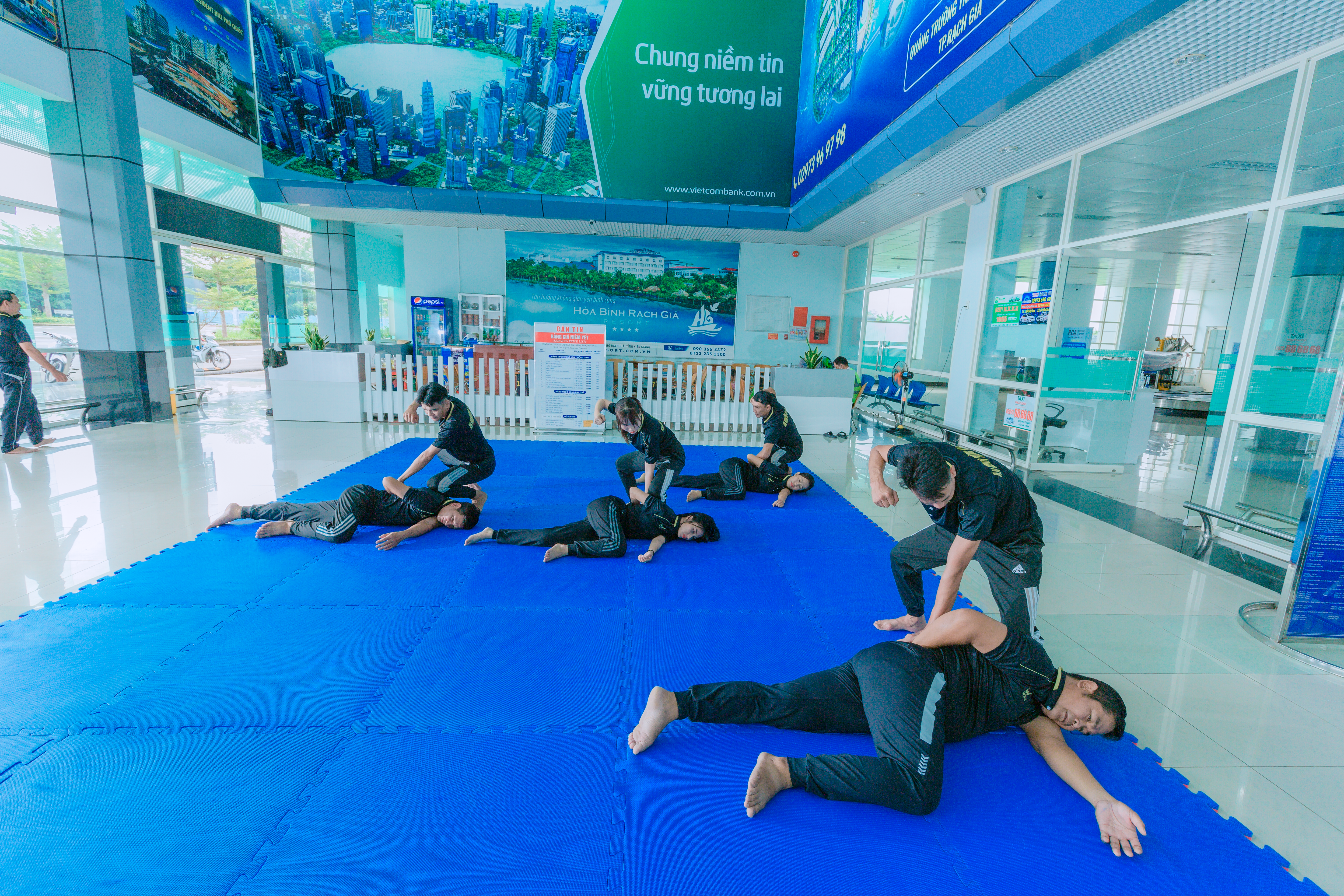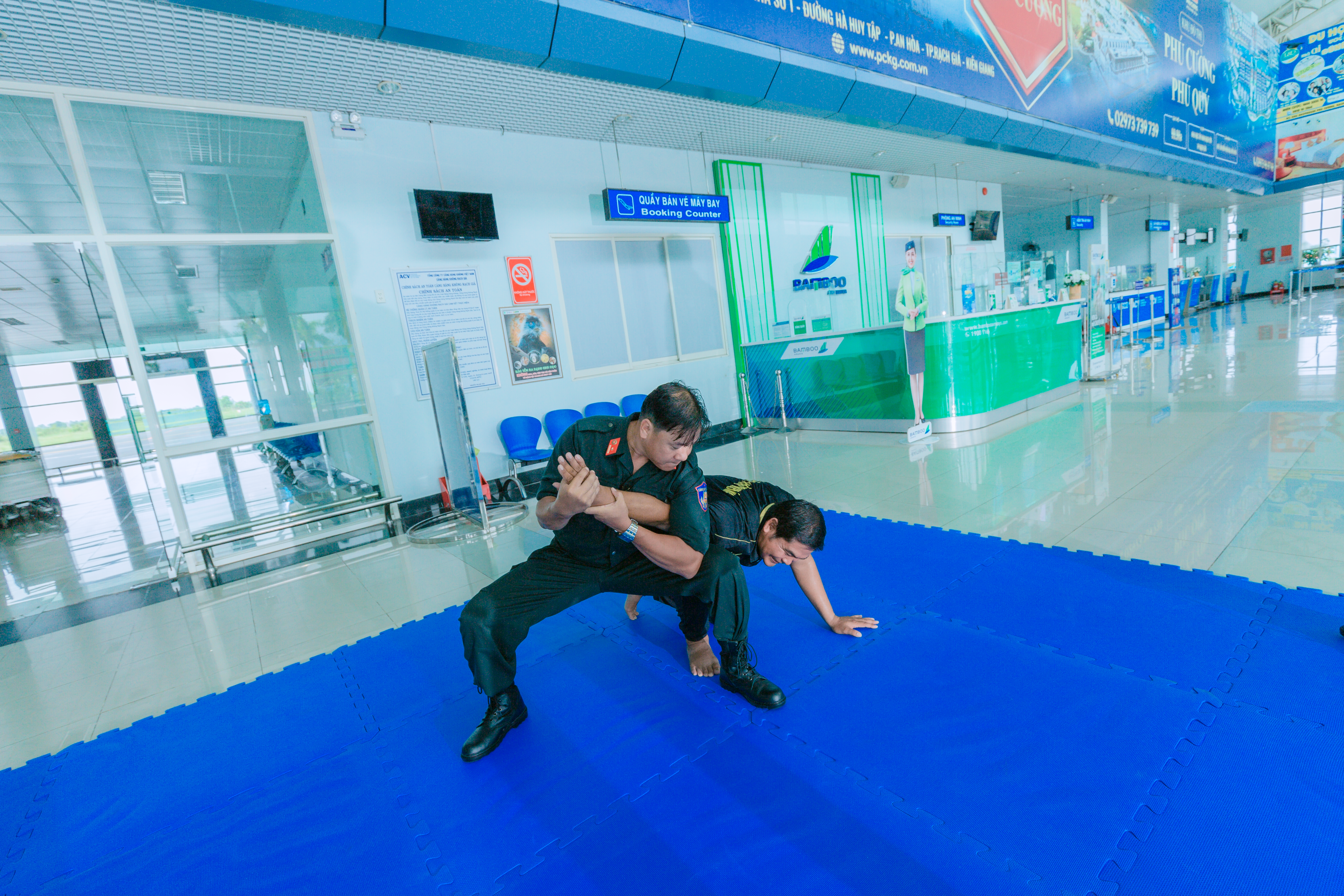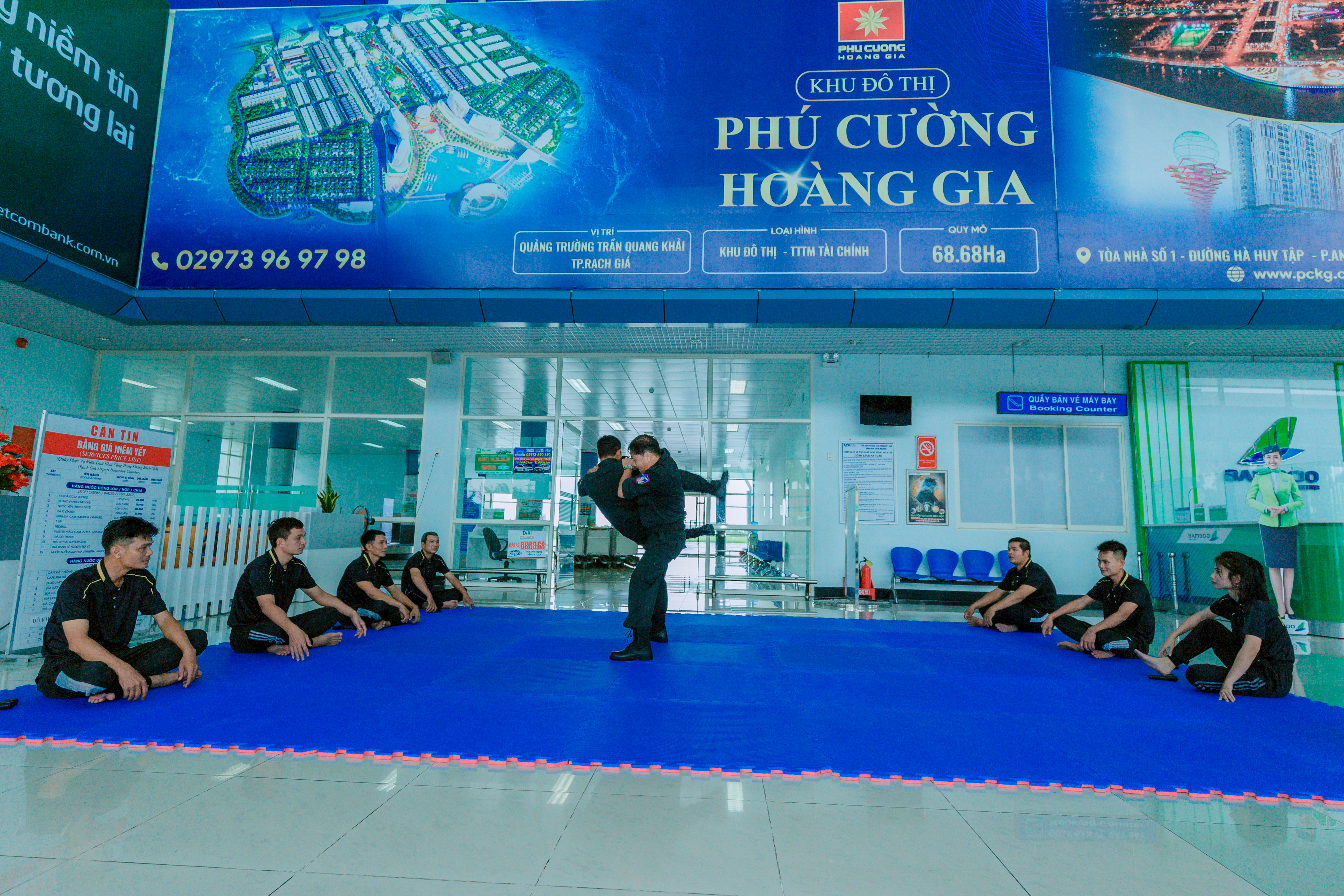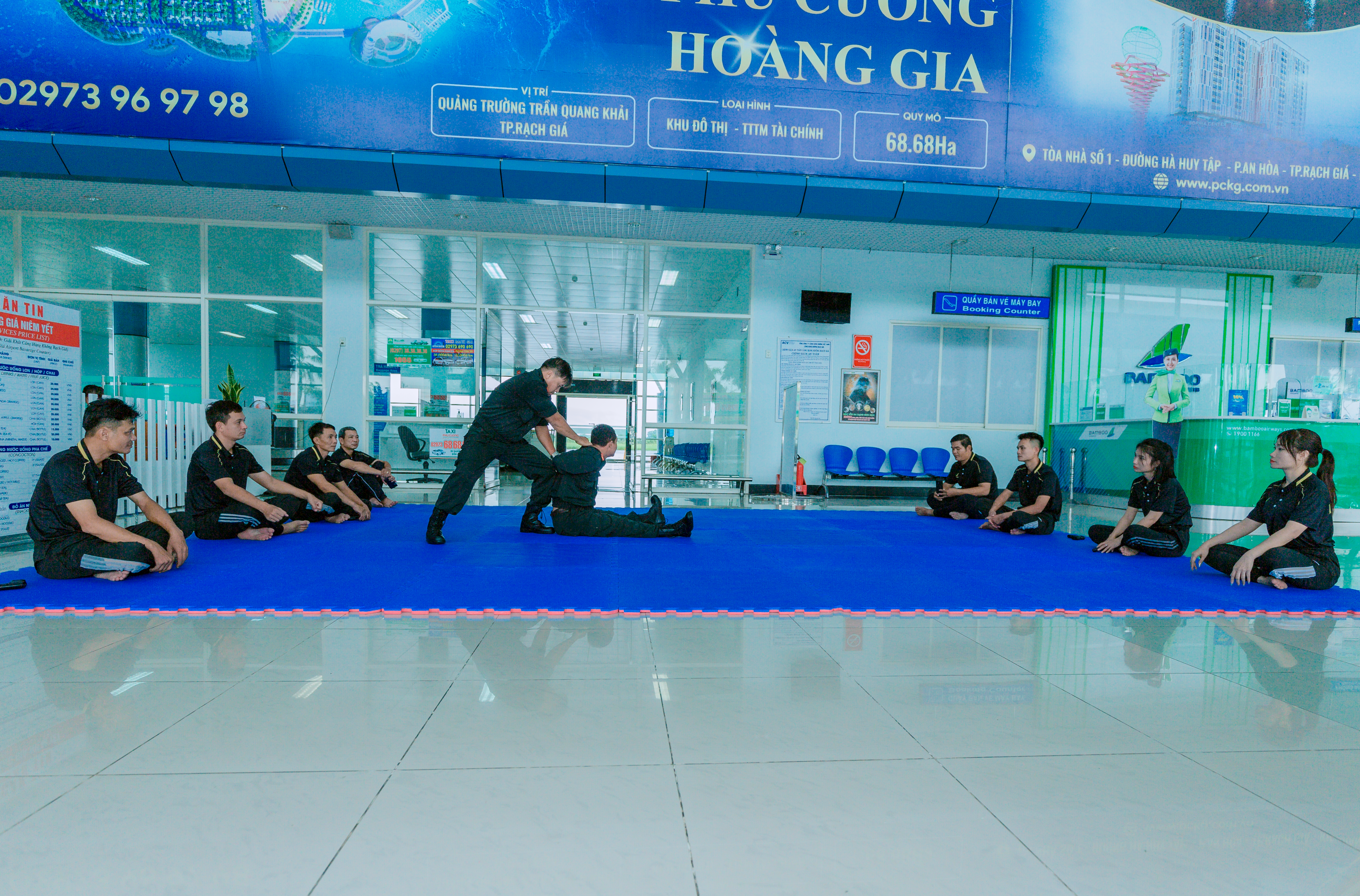Được sự quan tâm, chỉ đạo của Ban Giám đốc Công an tỉnh Kiên Giang, Ban Giám đốc Cảng hàng không Rạch Giá. Đội An ninh hàng không Cảng hàng không Rạch Giá đã phối hợp với Phòng Cảnh sát cơ động ( PK02) Công an tỉnh Kiên Giang xây dựng Kế hoạch số 03/KH-ANHK ngày 25 tháng 5 năm 2023 nhằm Tổ chức huấn luyện võ thuật tại chỗ cho lực lượng An ninh hàng không thuộc Đội an ninh hàng không Cảng hàng không Rạch Giá năm 2023.