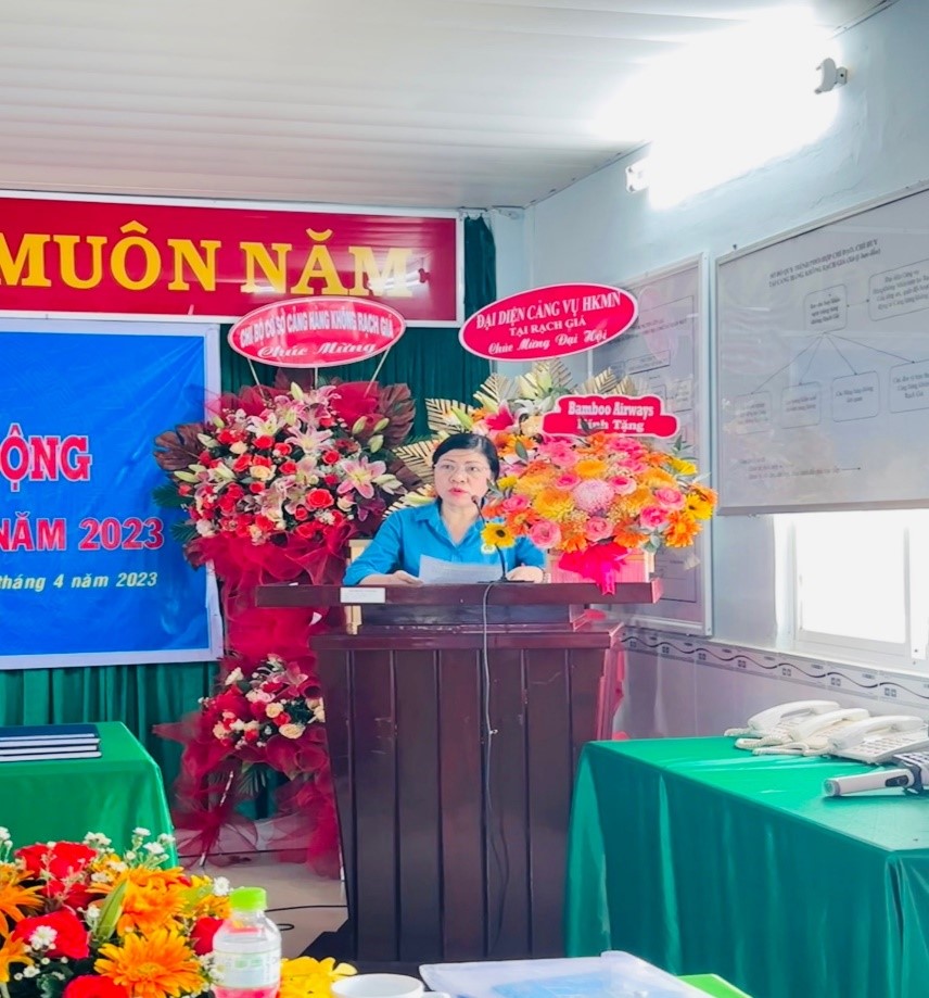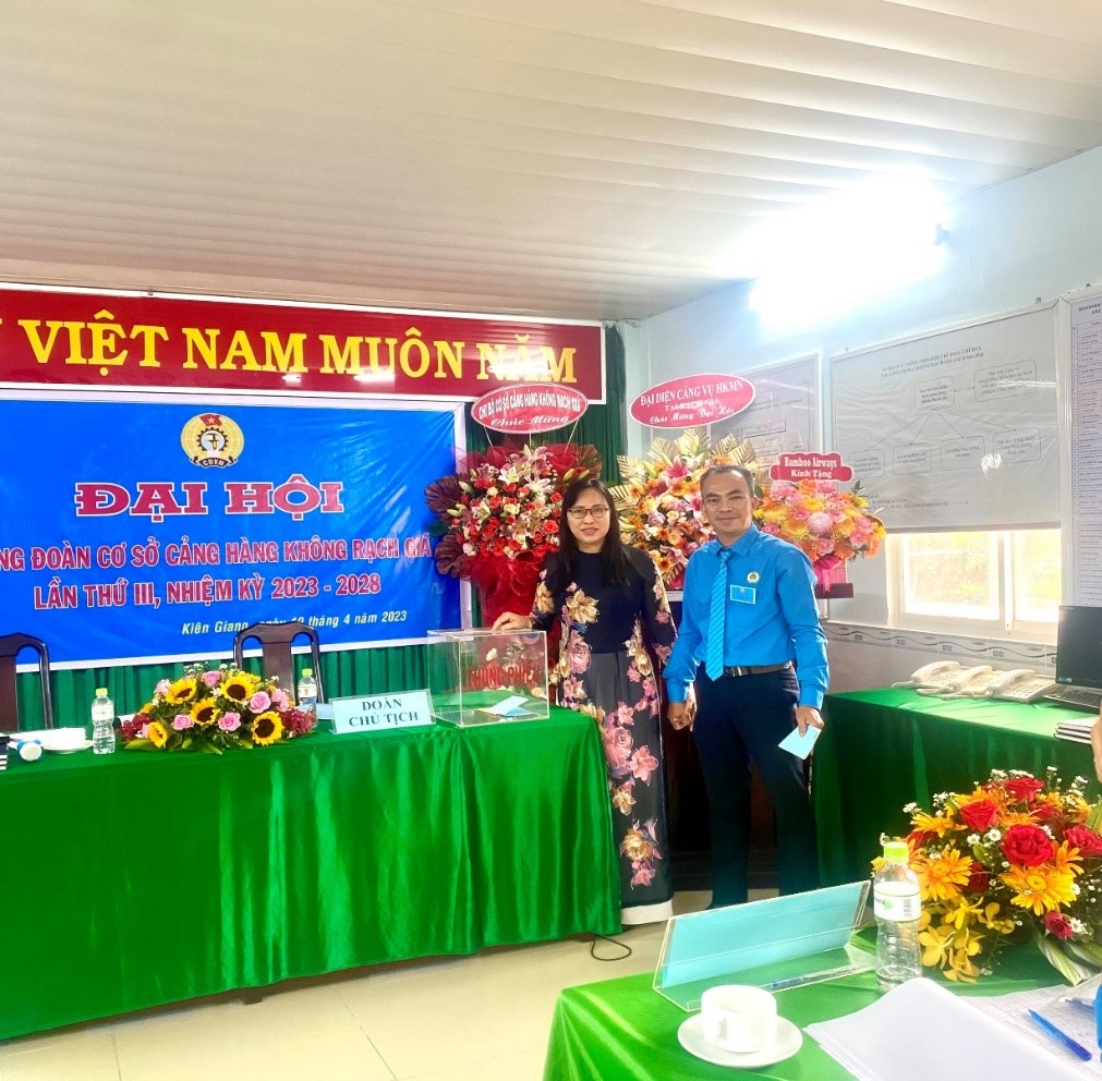 Đại hội công đoàn là đợt sinh hoạt chính trị sâu rộng, dân chủ, là ngày hội của cán bộ, đoàn viên công đoàn và của tổ chức công đoàn. Được sự cho phép của Công đoàn Tổng công ty cảng hàng không Việt Nam, ngày 19/4/2023, Công đoàn cơ sở Cảng hàng không Rạch Giá đã long trọng tổ chức Đại hội công đoàn cơ sở lần thứ III, nhiệm kỳ 2023 - 2028 với phương châm: “Đổi mới - Dân chủ - Đoàn kết - Phát triển”.