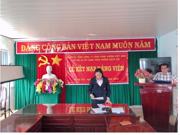 Nhằm thực hiện Nghị quyết của Đại hội Chi bộ cơ sở Cảng hàng không Rạch Giá nhiệm kỳ 2015-2020 về công tác xây dựng Đảng và phát triển đảng viên, đồng thời thực hiện Quyết định Số 1907-QĐ/ĐU và Số 1908-QĐ/ĐU ngày 23 tháng 10 năm 2019 của Đảng ủy Tổng Công ty Cảng hàng không Việt Nam về việc chuẩn y kết nạp đảng viên.
