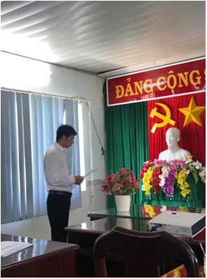Đứng trước cờ Đảng, cờ Tổ quốc và chân dung Chủ tịch Hồ Chí Minh, các đồng chí đảng viên mới tuyên thệ: Tuyệt đối trung thành với lý tưởng và mục tiêu cách mạng của Đảng, thực hiện nghiêm túc các nhiệm vụ của người Đảng viên, đóng góp tích cực vào việc xây dựng Đảng; không ngừng học tập nâng cao trình độ chuyên môn nghiệp vụ, tích cực tham gia công tác quần chúng, xứng đáng là Đảng viên Đảng Cộng sản Việt Nam.