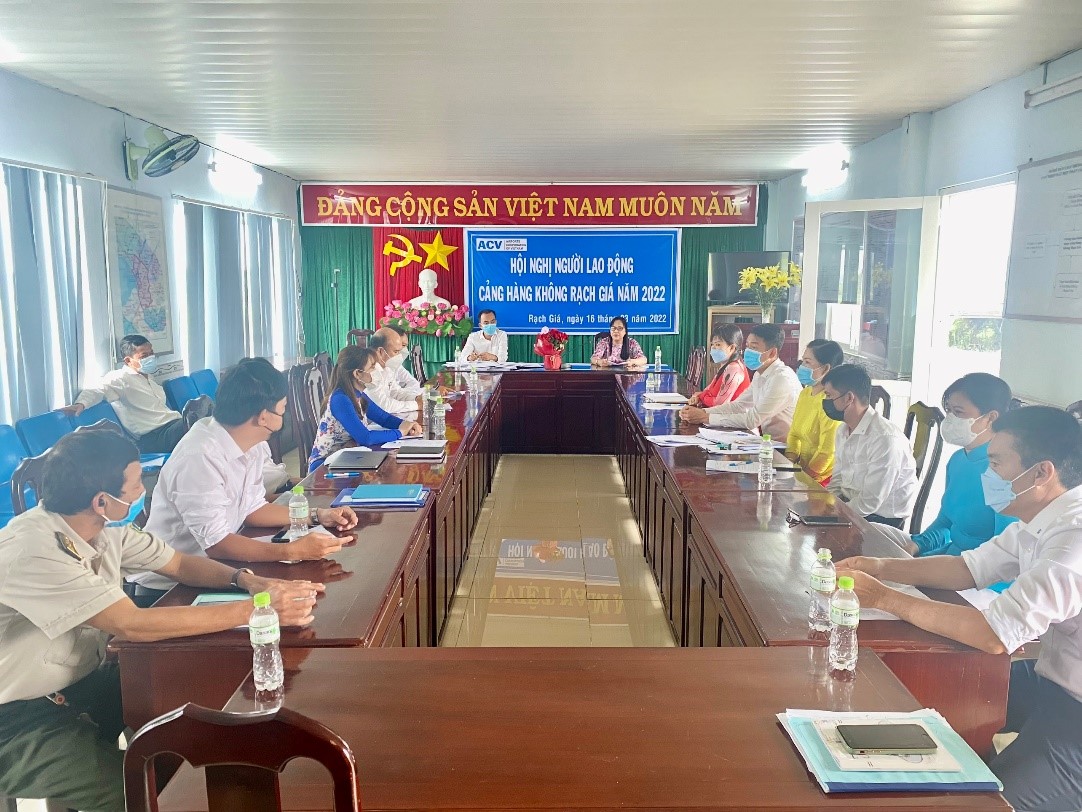 Nhằm phát huy hiệu quả Nghị quyết của Hội nghị Người lao động ngay từ đầu năm, qua đó để người lao động được tham gia góp ý và thực hiện các giải pháp nâng cao hiệu quả hoạt động sản xuất kinh doanh của đơn vị. Ngày 16/3/2022, Cảng hàng không Rạch Giá đã tổ chức Hội nghị Người lao động năm 2022 với mục đích phát huy quyền dân chủ trực tiếp của người lao động, tạo điều kiện để người lao động được biết, được tham gia ý kiến, được quyết định và giám sát những vấn đề có liên quan đến quyền, lợi ích, nghĩa vụ và trách nhiệm của mình.