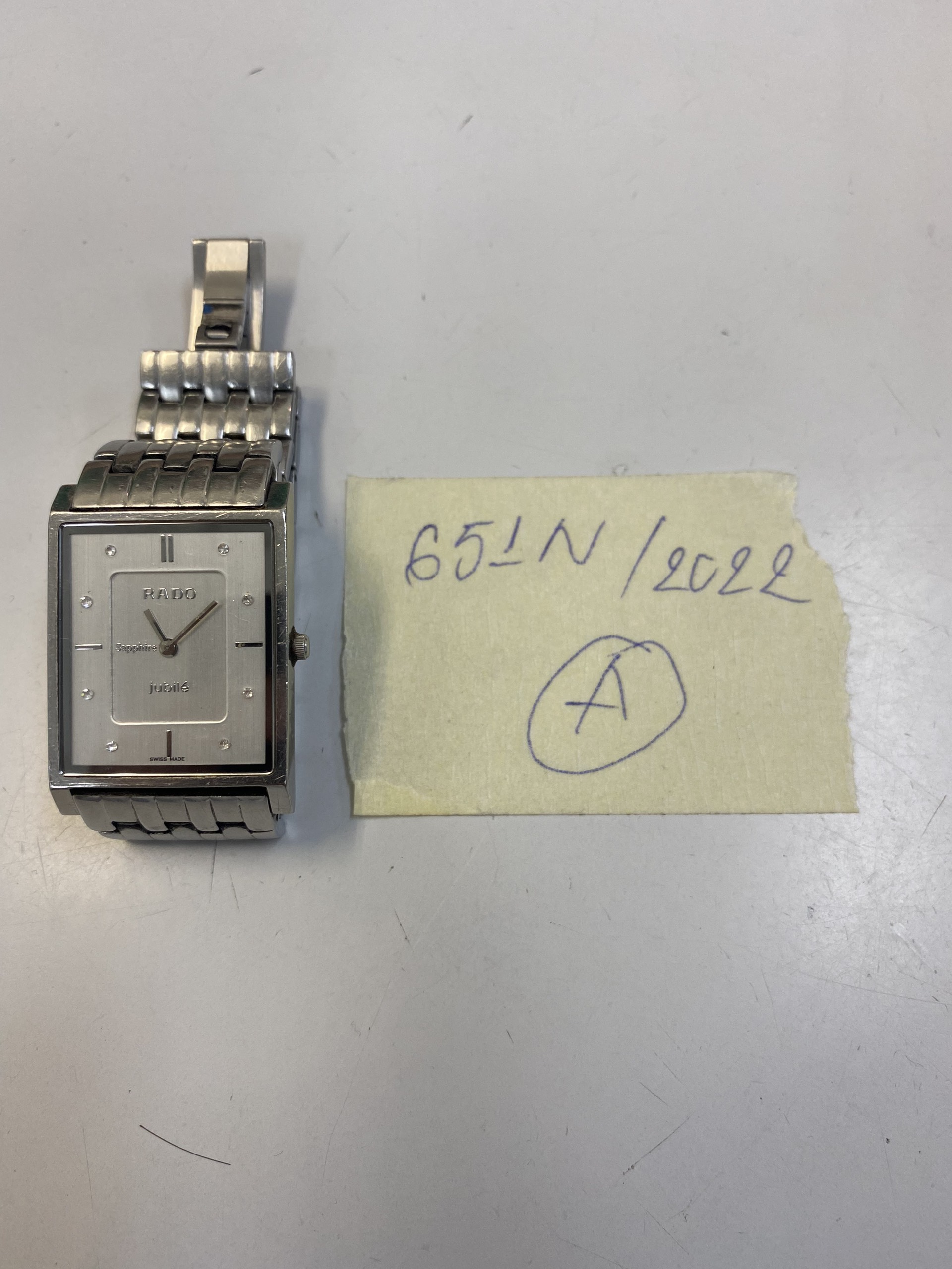 Ngày tiếp nhận: 16/8/2022 Mô tả: 01 đồng hồ dây kim loại màu trắng mặt vuông có chữ RADO. Vị trí: An ninh soi chiếu quốc nội |