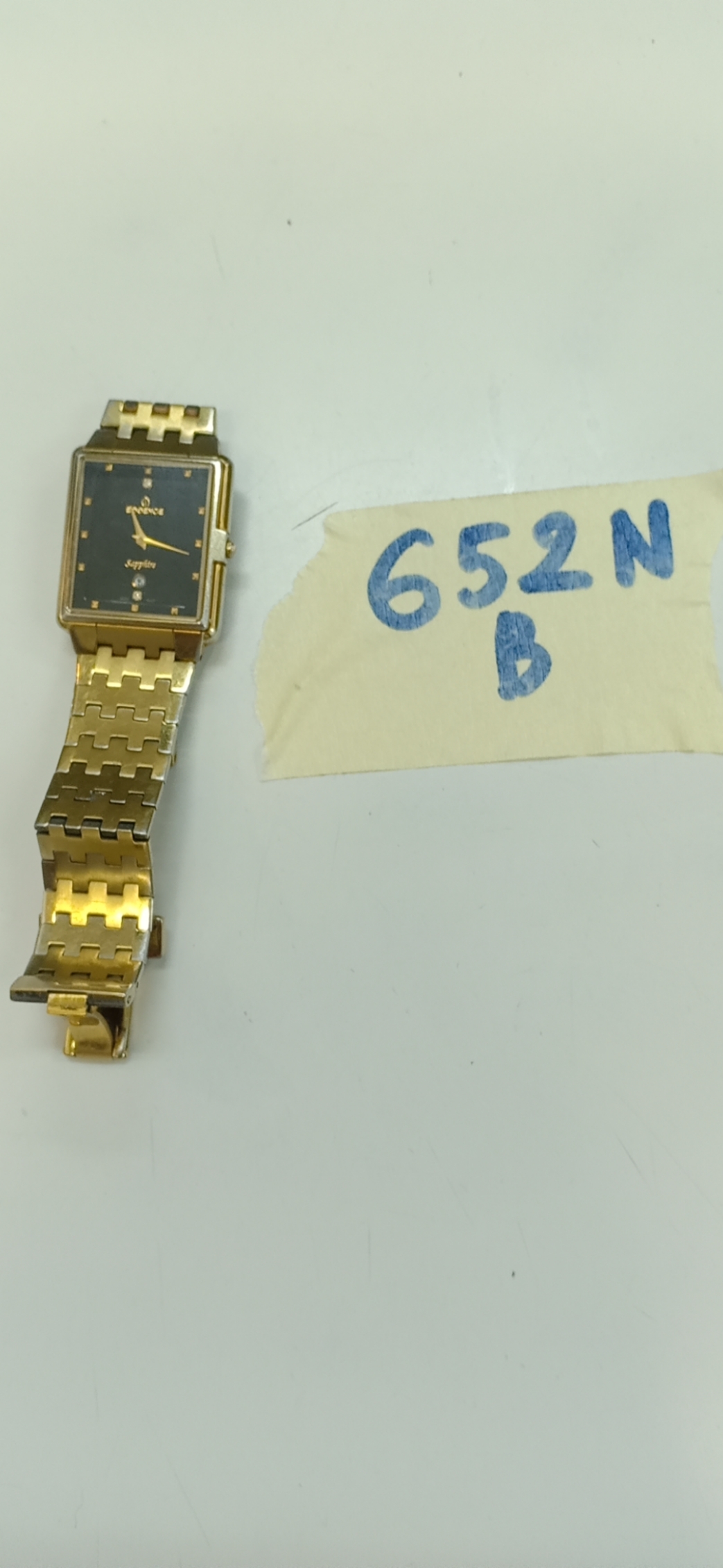 Ngày tiếp nhận: 16/8/2022 Mô tả: 01 đồng hồ dây kim loại màu vàng mặt vuông có chữ ESSENCE. Vị trí: An ninh soi chiếu quốc nội |