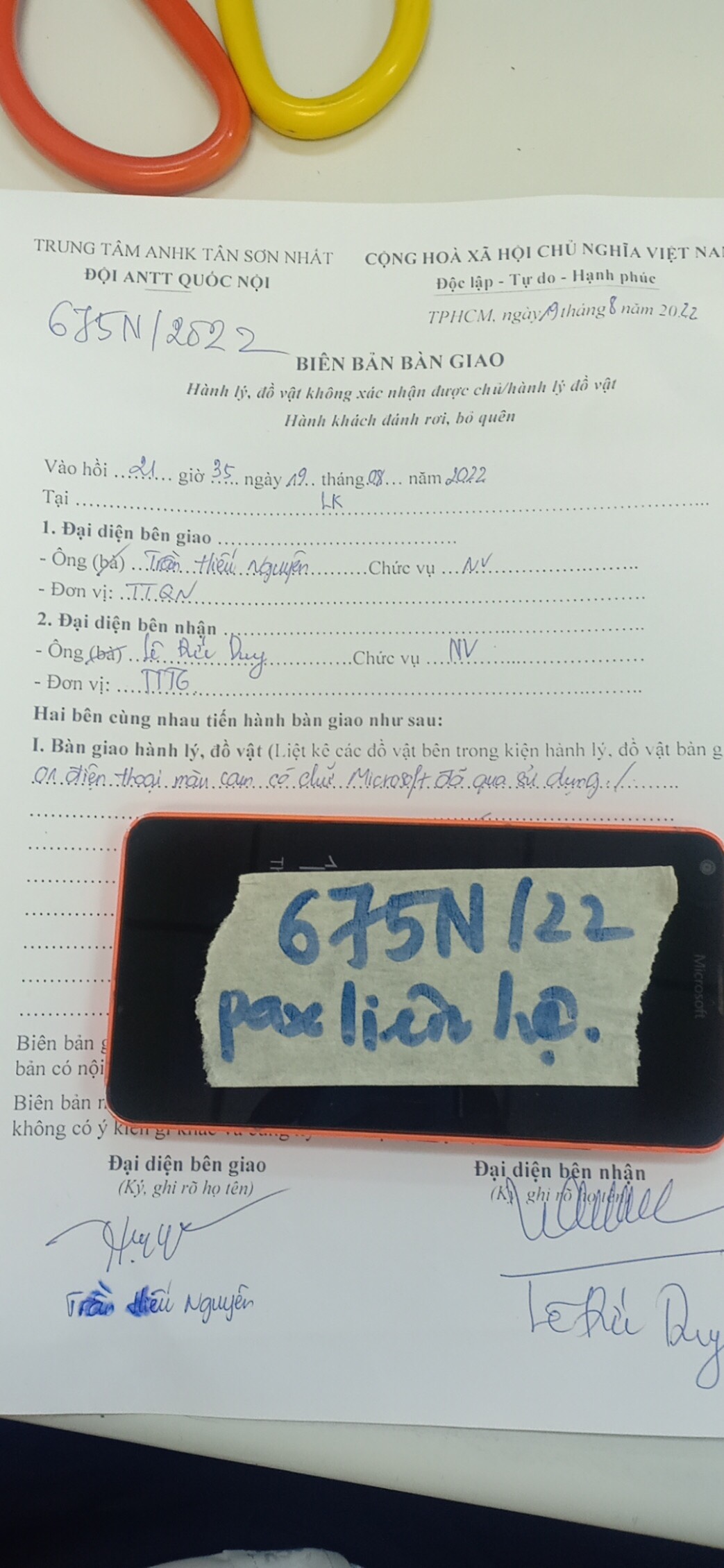 Ngày tiếp nhận: 20/8/2022 Mô tả: 01 điện thoại Nokia. Vị trí: An ninh soi chiếu quốc nội |