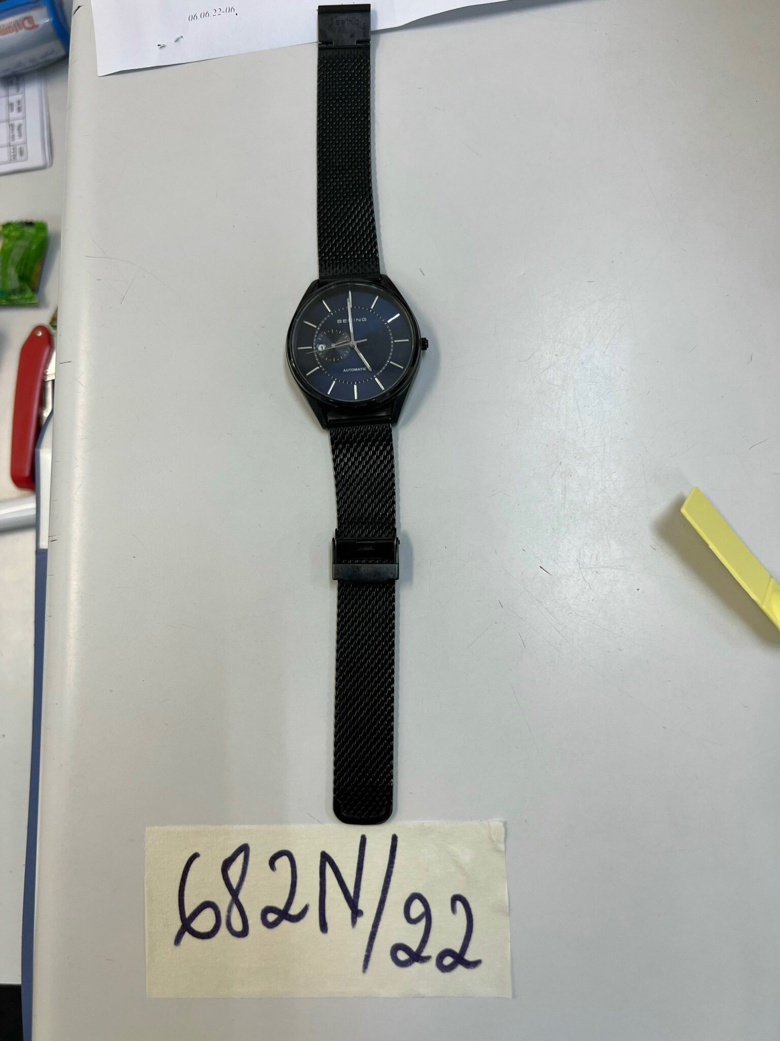 Ngày tiếp nhận: 21/8/2022 Mô tả: 01 đồng hồ Bering kim loại đen. Vị trí: An ninh soi chiếu quốc tế |