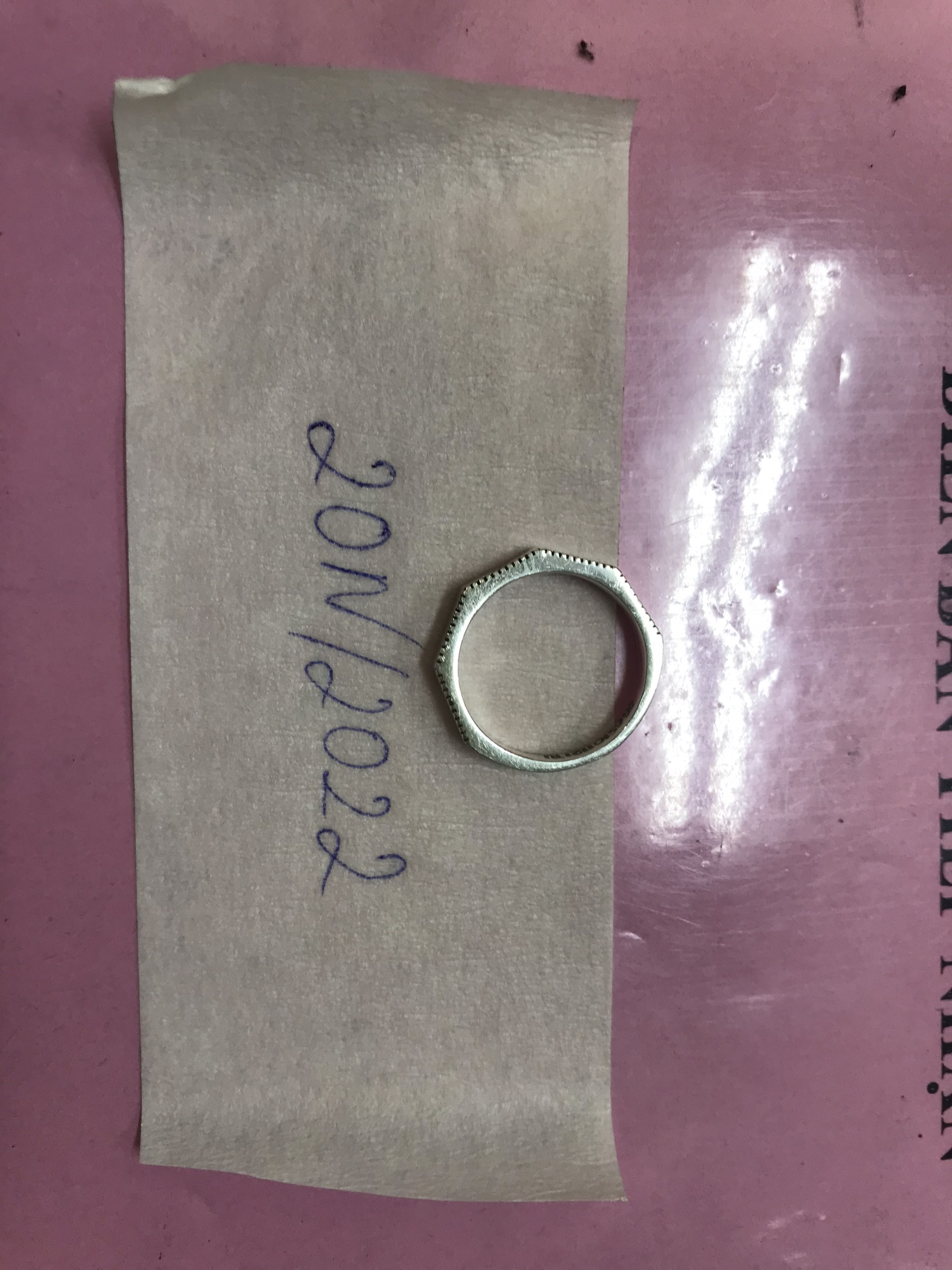 Ngày tiếp nhận: 18/01/2022 Mô tả: 01 chiếc nhẫn kim loại màu trắng. Vị trí: An ninh soi chiếu quốc nội |