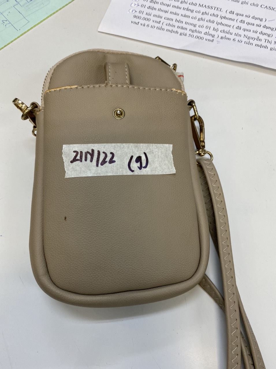Ngày tiếp nhận: 23/01/2022 Mô tả: 01 túi đeo nhỏ ca rô màu nâu vàng, bên trong gồm: 29.000VNĐ tiền mặt. (Hai mươi chín nghìn đồng). Vị trí: An ninh trật tự quốc nội |