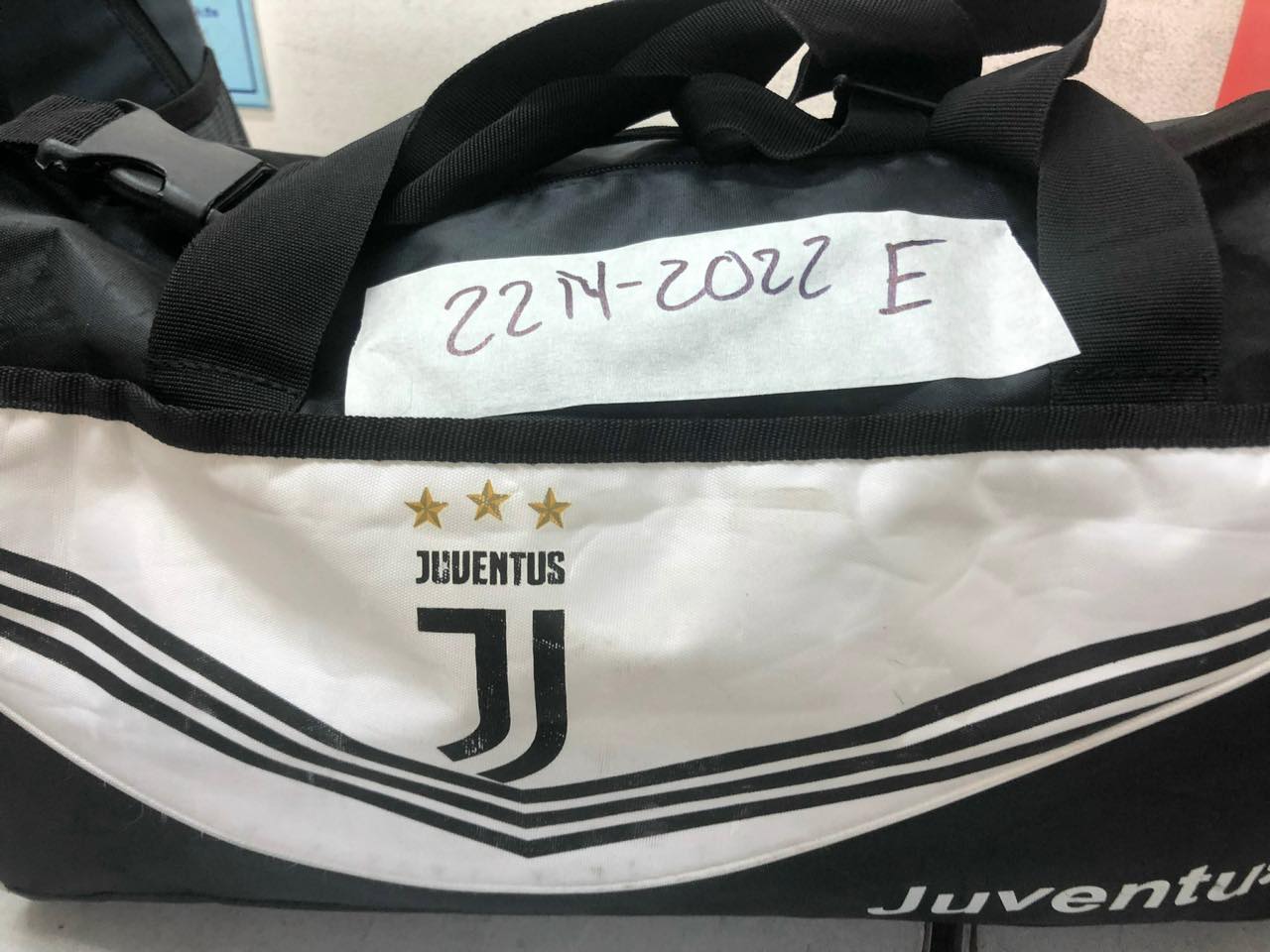 Ngày tiếp nhận: 20/01/2022 Mô tả: 01 túi xách màu đen có chữ Juventus bên trong có quần áo. Đã sử dụng. Vị trí: An ninh soi chiếu quốc nội |