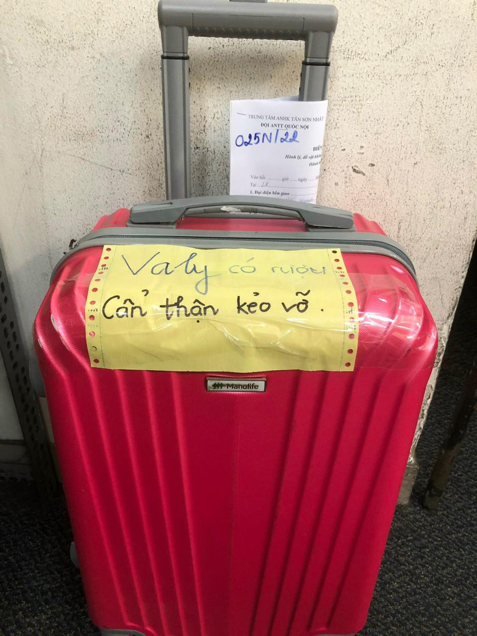 Ngày tiếp nhận: 21/01/2022 Mô tả: 01 vali màu hồng (đã bị bung khóa), bên trong có 03 giỏ quà. Vị trí: An ninh soi chiếu quốc nội |