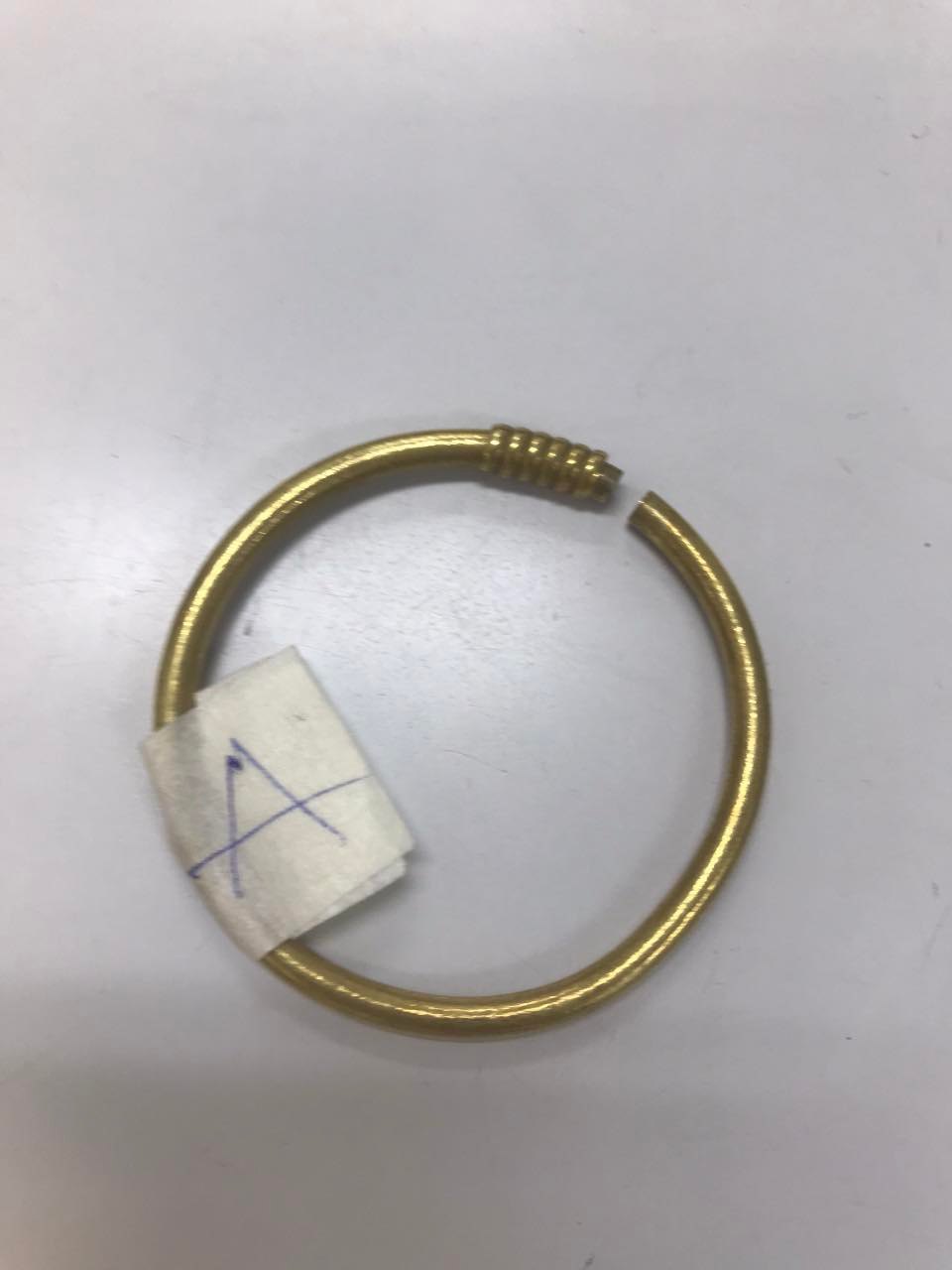 Ngày tiếp nhận: 21/01/2022 Mô tả: 01 vòng tay kiềng kim loại màu vàng. Vị trí: An ninh soi chiếu quốc nội |